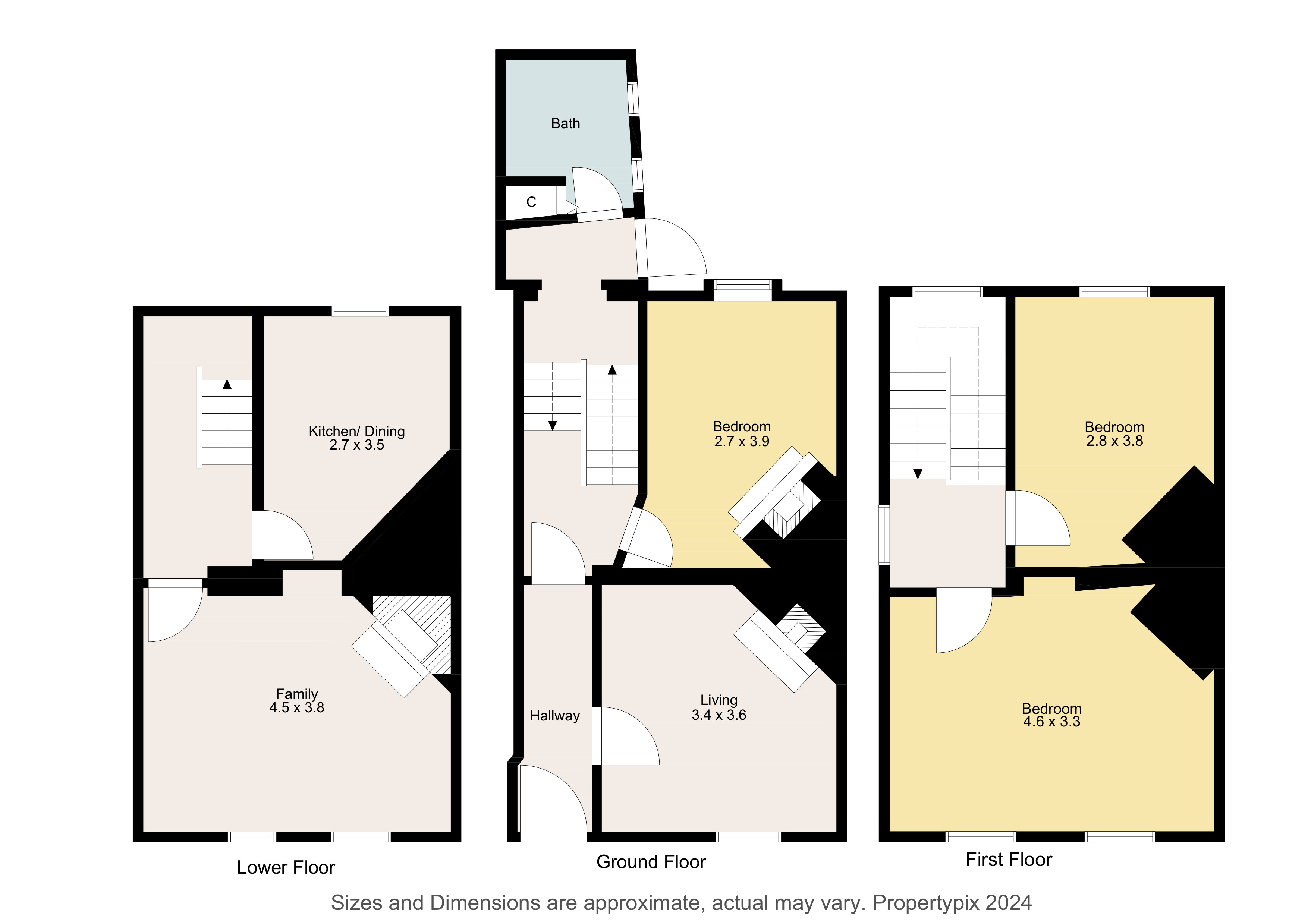 Set over three levels the property includes a family room and kitchen at basement level a living room, bedroom and bathroom on the ground floor and two further bedrooms at first floor level. A private rear yard adds further flexibility. Its historic footprint and layout offer fantastic options for reconfiguration or modernisation allowing a buyer to shape the home to suit their needs.