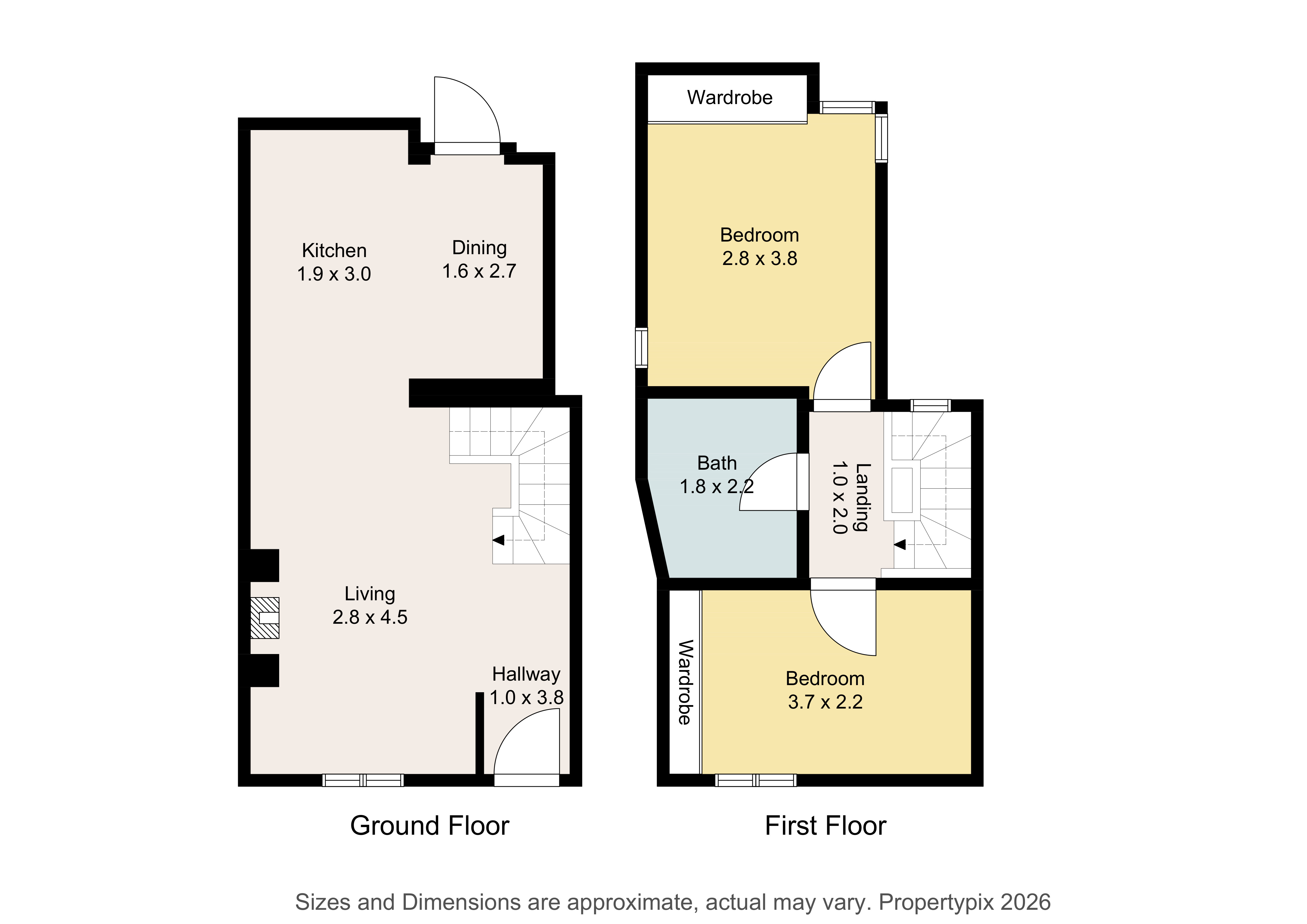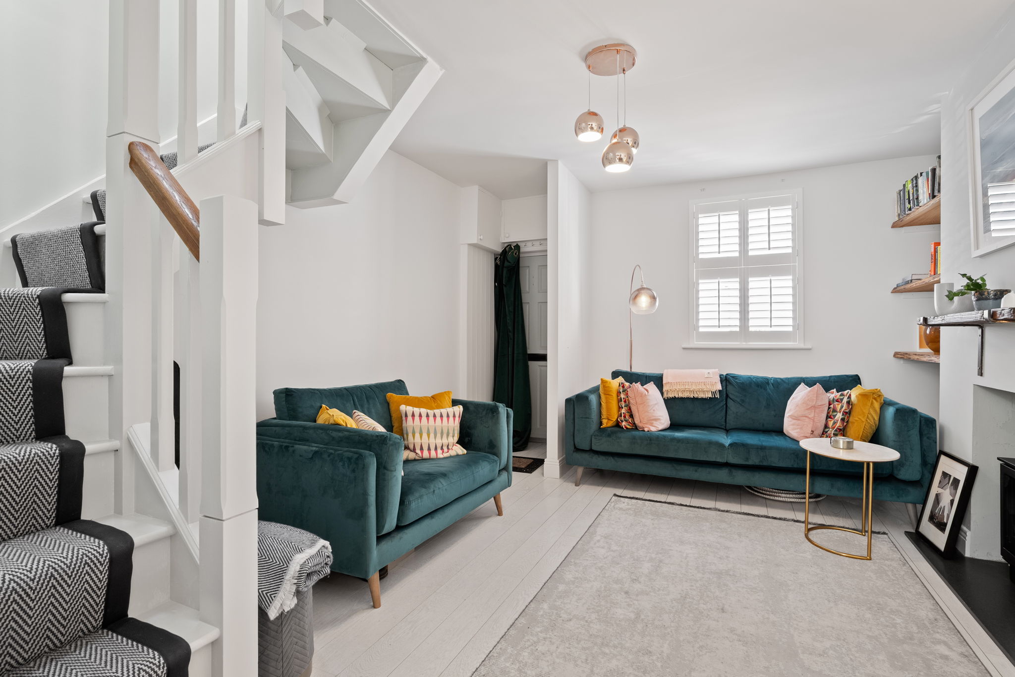 Upstairs is equally as impressive with two spacious double bedrooms – bedroom 1 is to the rear with mirrored wardrobe doors through to the walk in wardrobe. To the front is the second bedroom with built in mirrored wardrobes and shelving. The bright shower room completes the internal accommodation with a polished concrete look floor and vanity whb, shower, w.c and recessed storage.