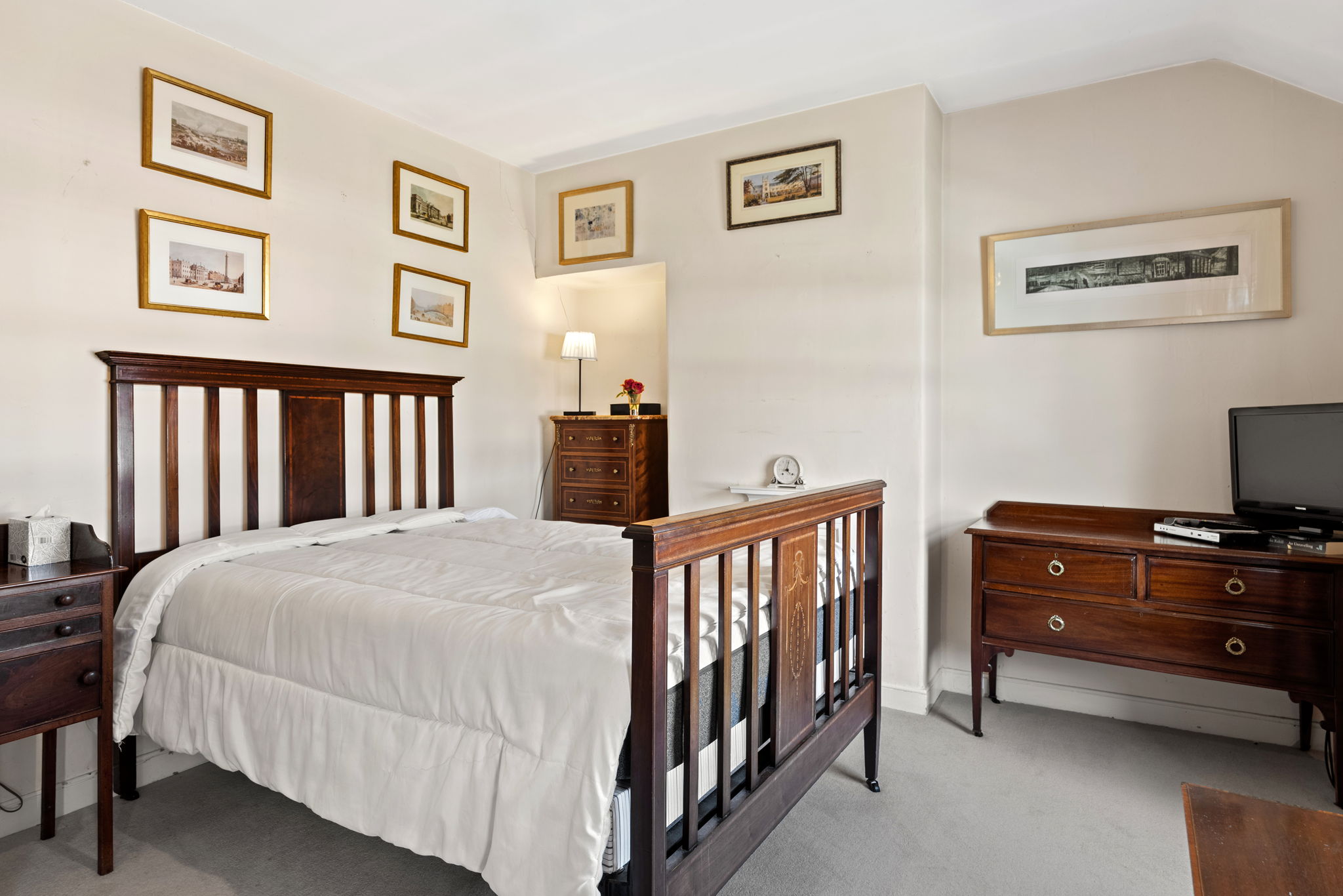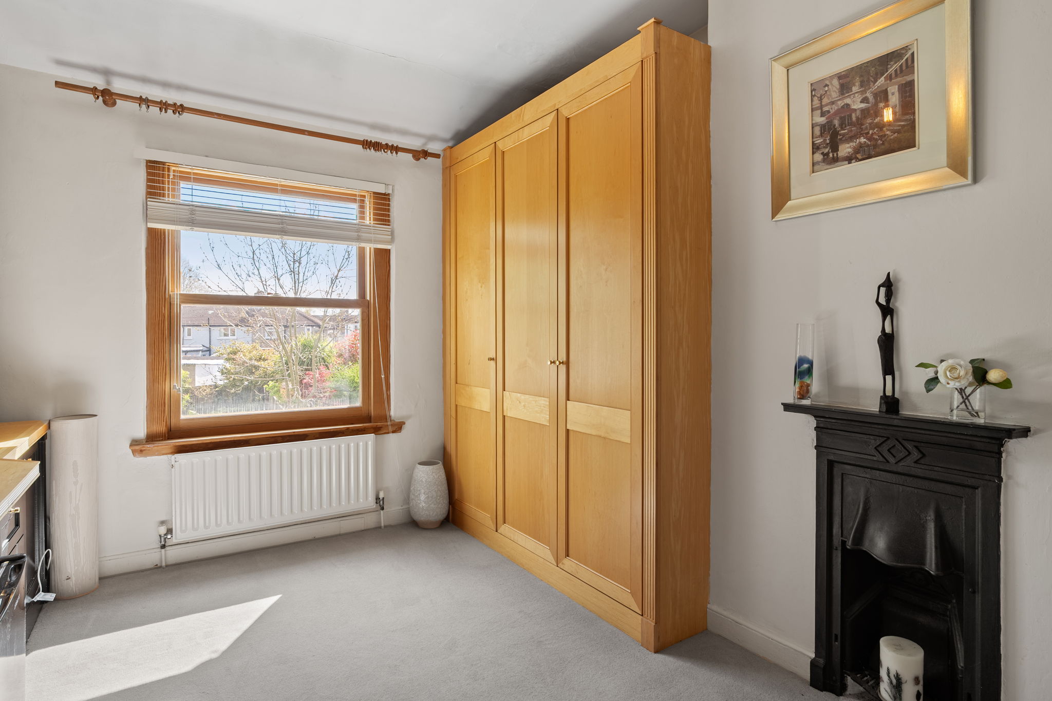 Upstairs, the spacious principle bedroom is to the front – originally two bedrooms - runs the entire width of the property with cast iron fireplace and built in wardrobes. To the rear is bedroom 2 with built in desk and alcove units.