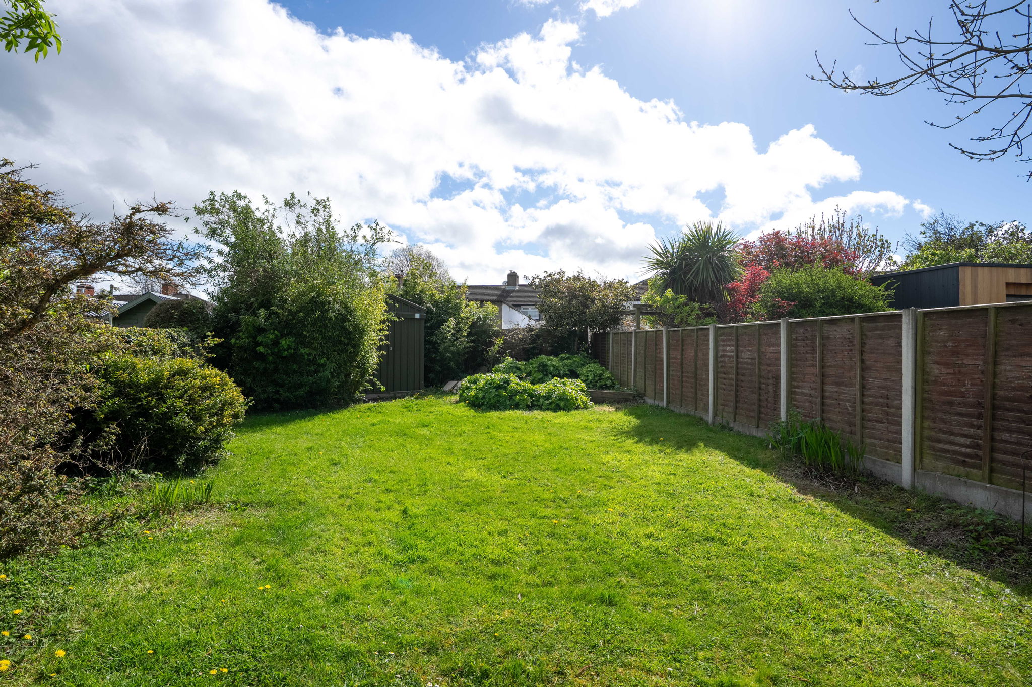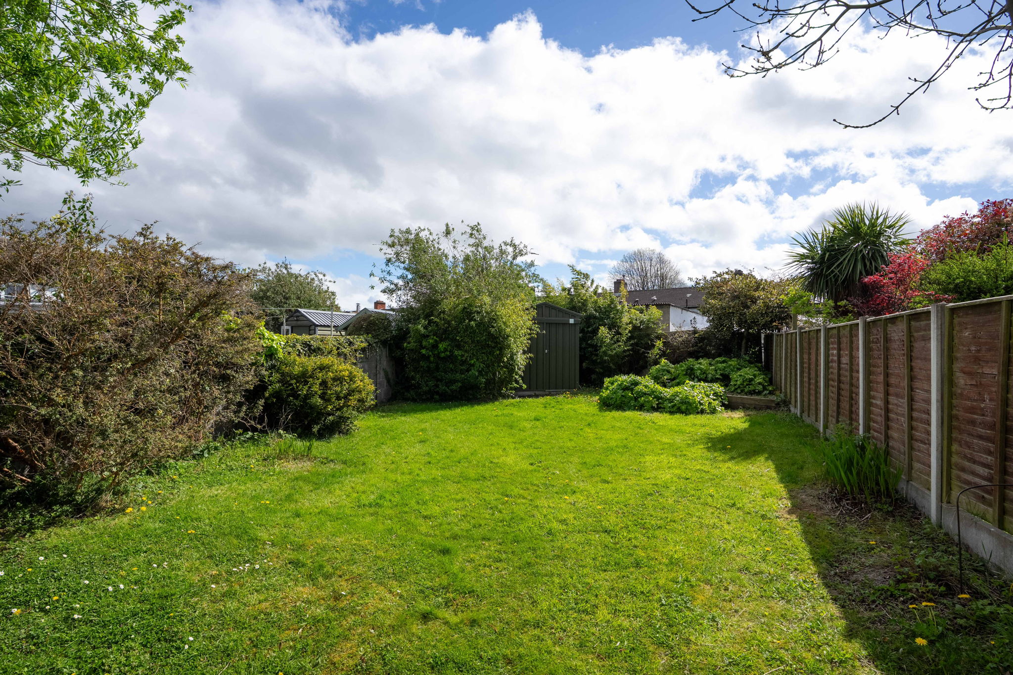 To the rear is a wonderful, sunny garden c. 65’ long with a variety of trees, plants and shrubs. Concrete base steel shed for additional storage.