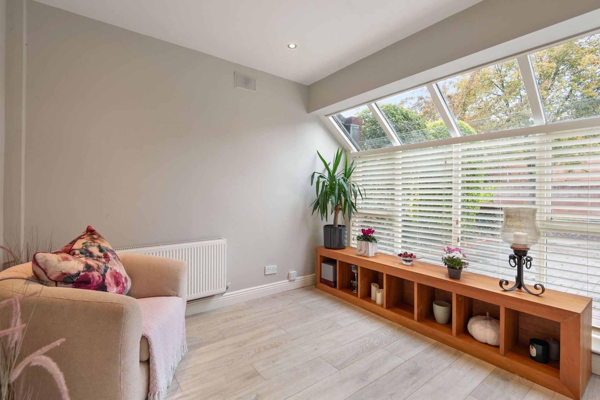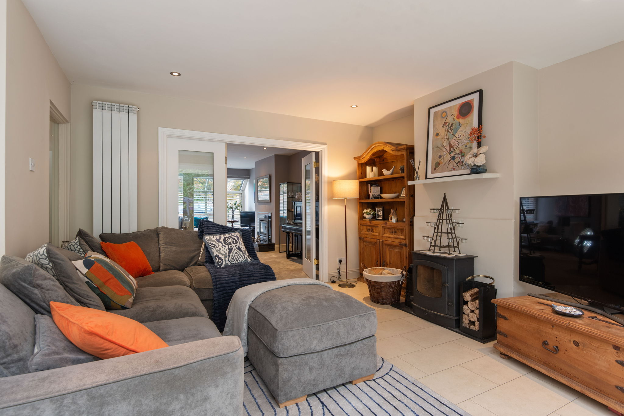 A striking double-height entrance hallway with marble tiled flooring sets the tone for the quality throughout. To the front, a bright home office offers a versatile work space. A generous living room with feature stove and contemporary radiators provides a cosy retreat, while to the rear a stylish open-plan kitchen and breakfast room with large island flows into a glass-walled extension, seamlessly connecting indoors and outdoors. A utility room and guest WC complete the ground floor.