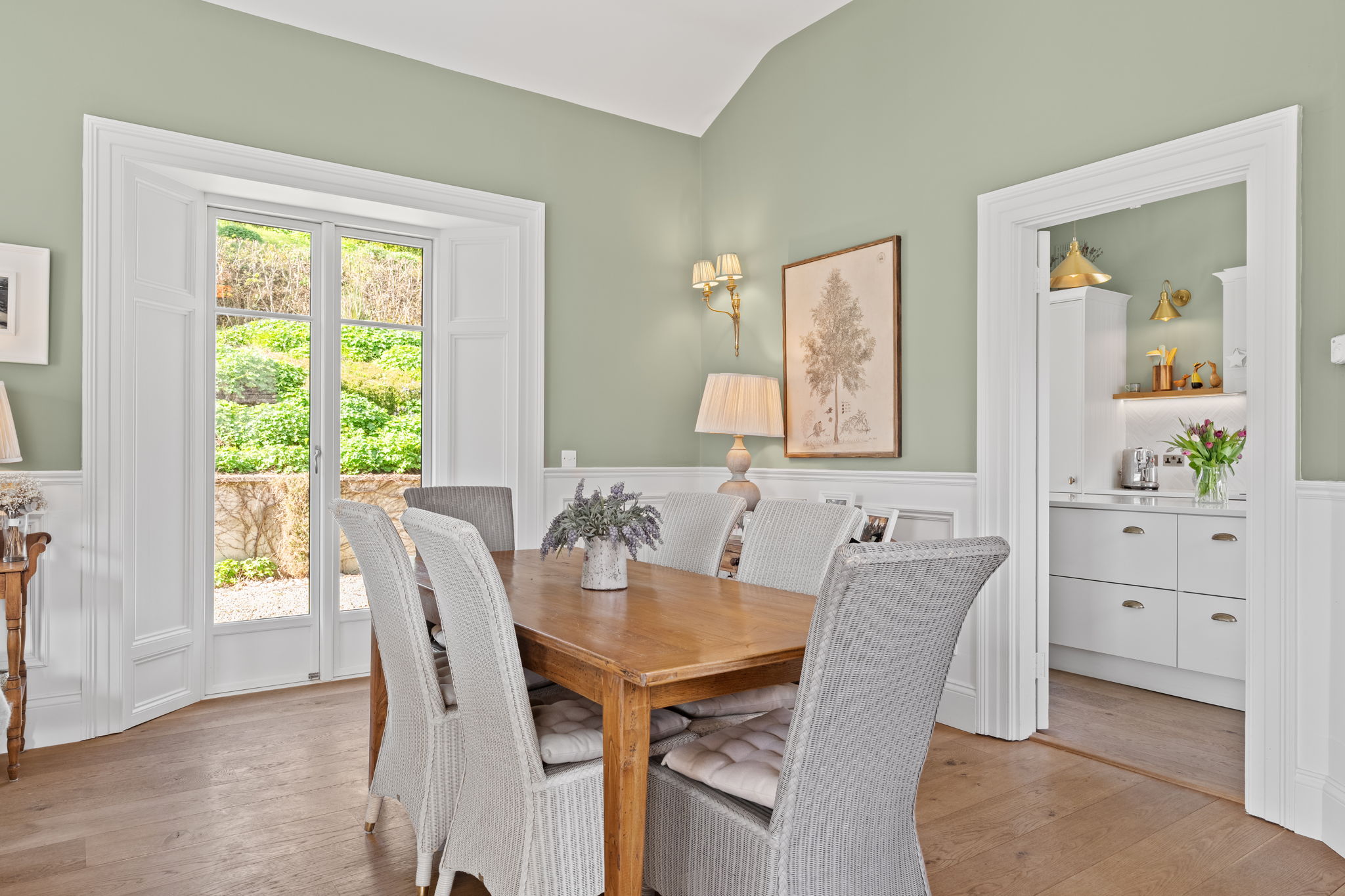 "Camross" has been sympathetically refurbished to retain its original character, creating charming, characterful interiors thoughtfully upgraded for modern comfort. The property offers the perfect blend of period charm and contemporary living, where the original cottage is connected via a light-filled conservatory-style reading room to the newer wing, completed in 2011. Every element of the design has been carefully considered, resulting in a tranquil retreat where every detail has been considered, with principal living spaces oriented to enjoy the gardens and terraces.