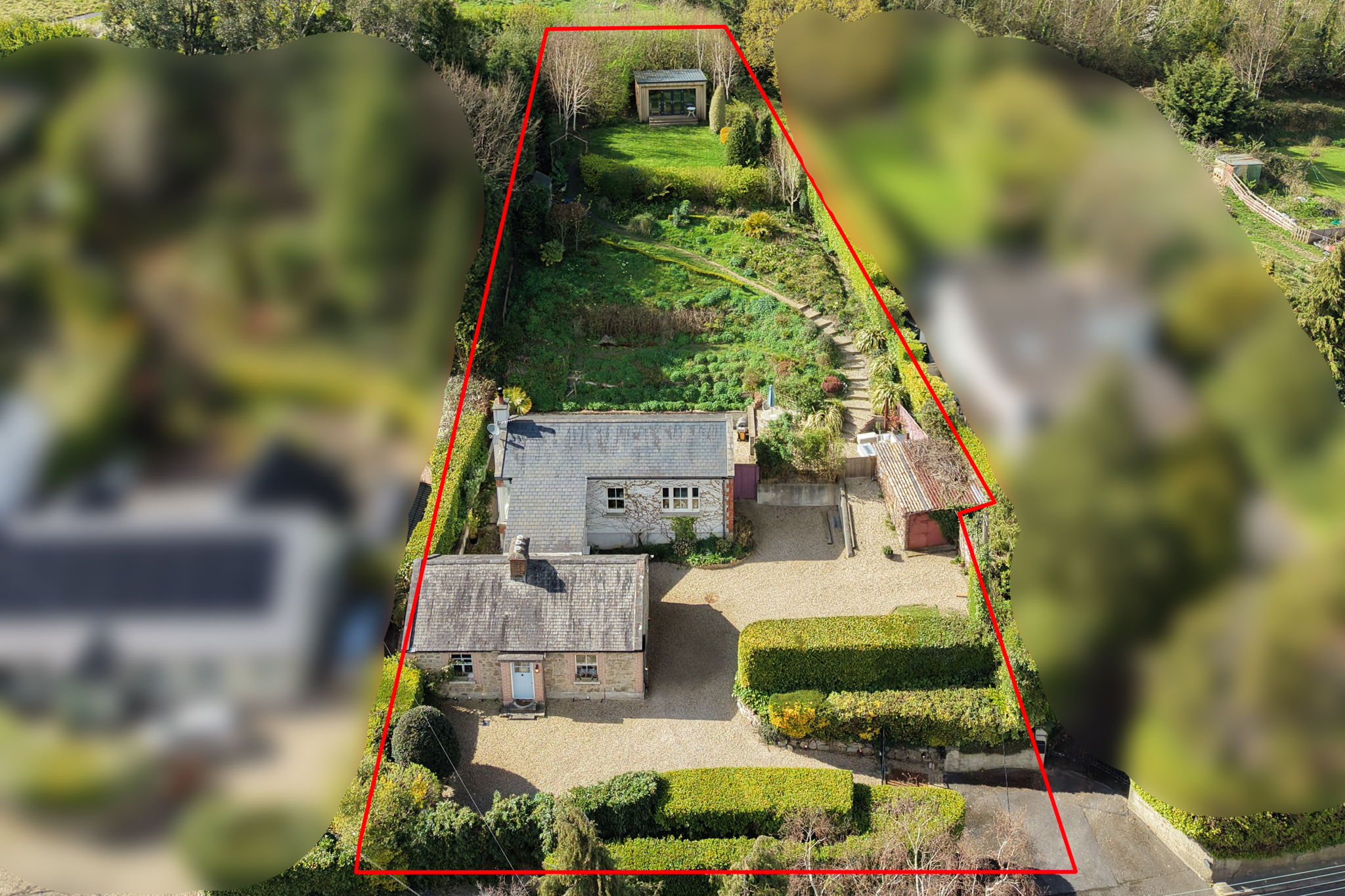 Outside, the gardens are a standout feature, richly planted, mature and wonderfully private. To the front, electronic gates open onto ample off-street parking, while a charming cobbled courtyard creates an intimate transition between house and garden. To the rear, a series of elevated terraces overlook a captivating backdrop of mature woodland, layered planting and herbaceous borders, offering an idyllic setting for outdoor dining and quiet retreat.