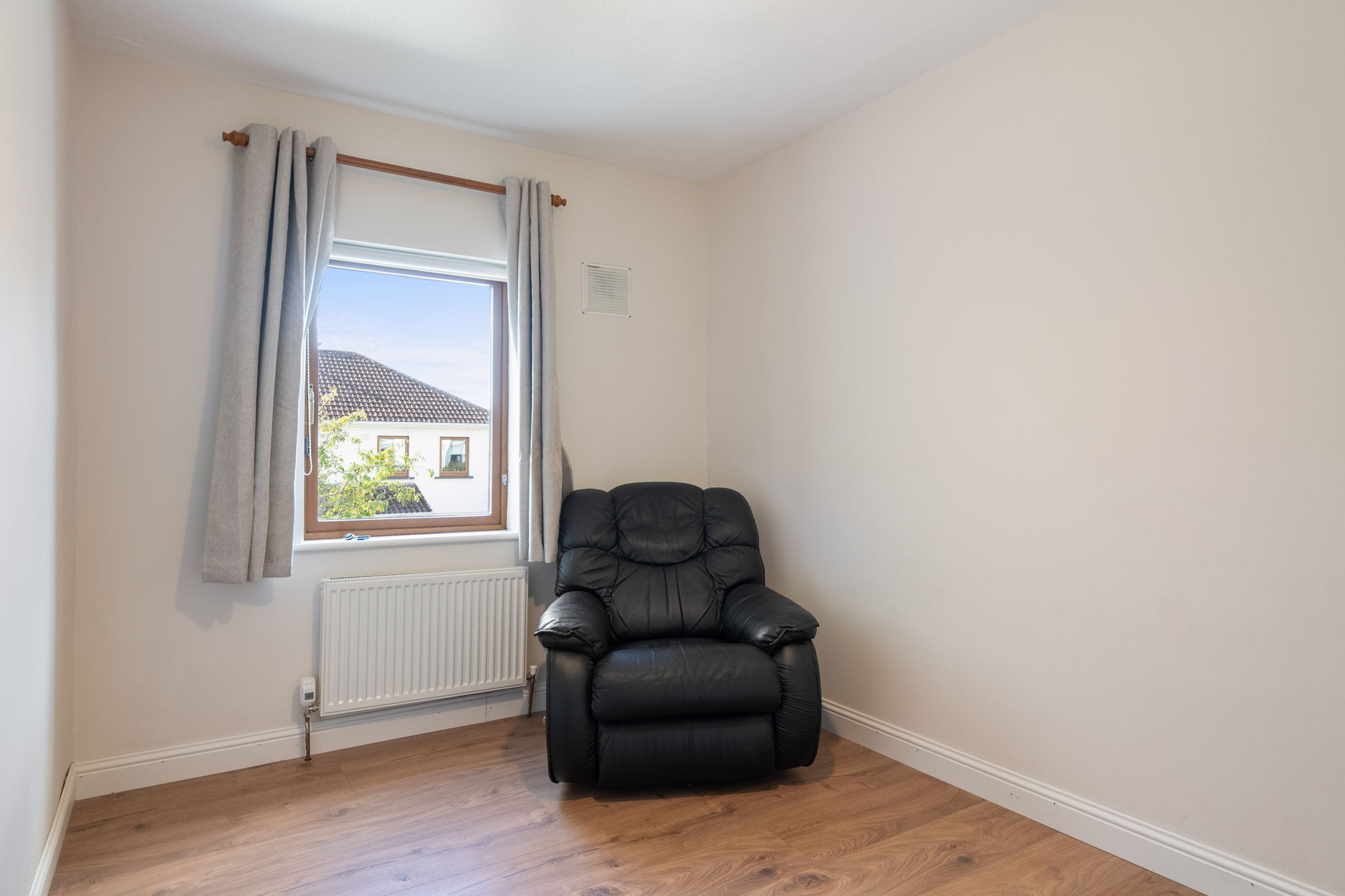 Parking is to the front. The gardens are a real asset to this property with a lawned and railed front garden which is unique within the development and a South westerly paved rear garden. The Dodder woodland which extends down to the dodder river to the side of the property is a unique feature and also offers privacy and seclusion. The concrete, wired and plumbed shed to rear currently housing the washing machine and dryer as well as an additional aluminium storage unit to rear offers additional potential and storage solutions.