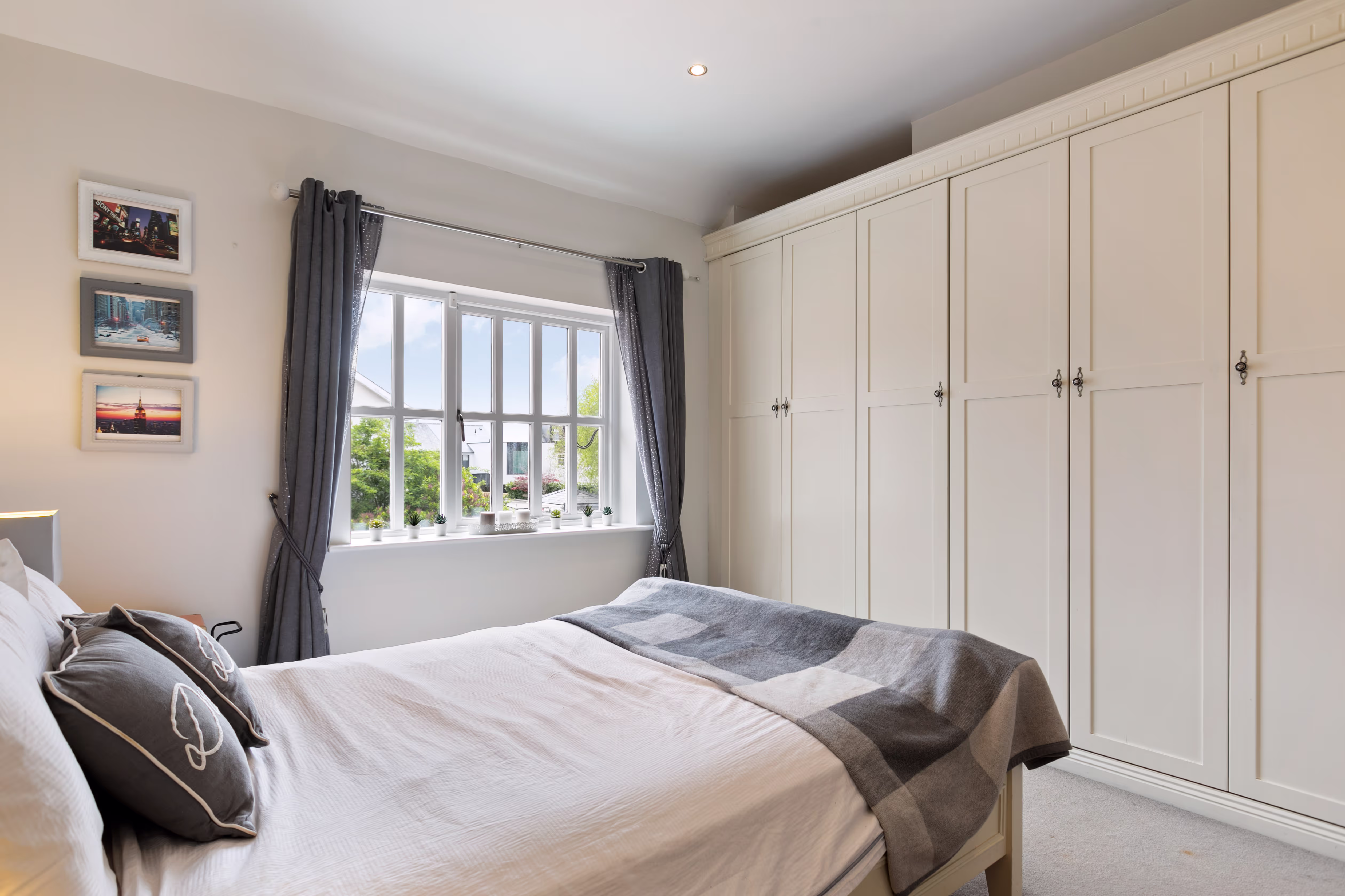 Upstairs is equally as impressive and bright with four spacious bedrooms – the master suite has a walk in wardrobe, dressing area, balcony and an ensuite shower room. All bedrooms have made to measure Christoff fitted wardrobes. The family bathroom completes the internal accommodation with twin shower, w.c, vanity whb and storage.