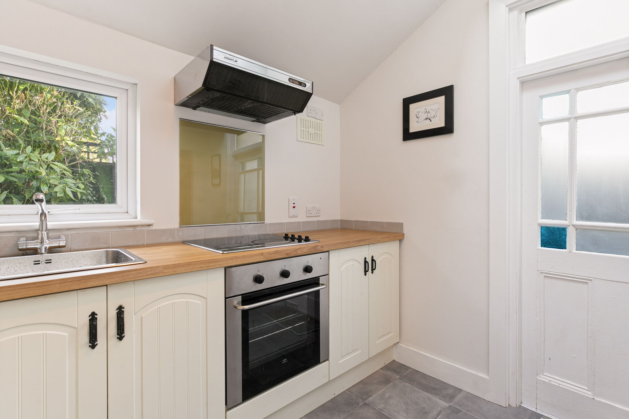 Fitted units, sink unit, plumbed for washing machine, CH boiler and door to rear.