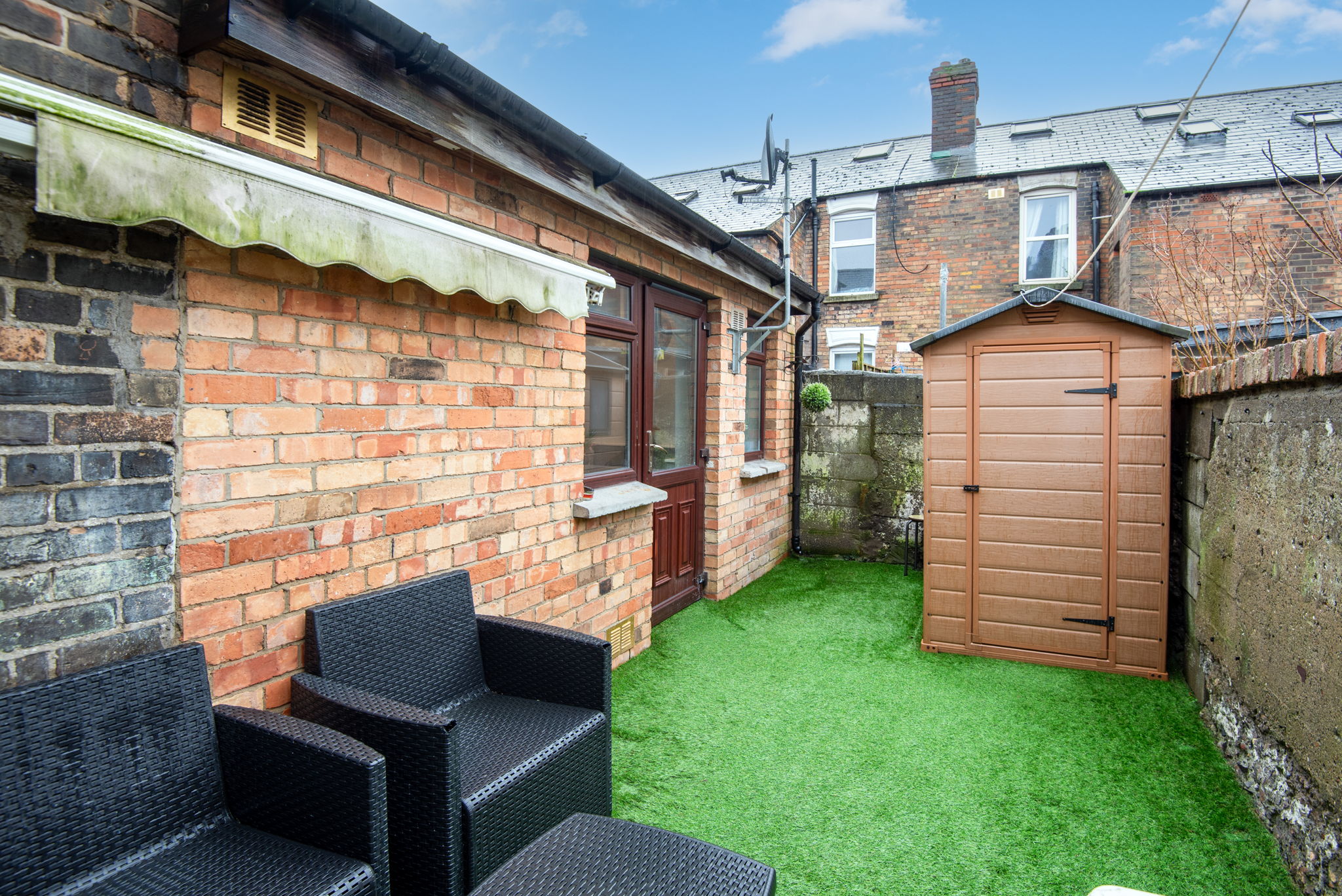 Outside, to the front is a low maintenance railed front garden. The rear garden – also low maintenance has a westerly aspect and is laid out in artificial grass.