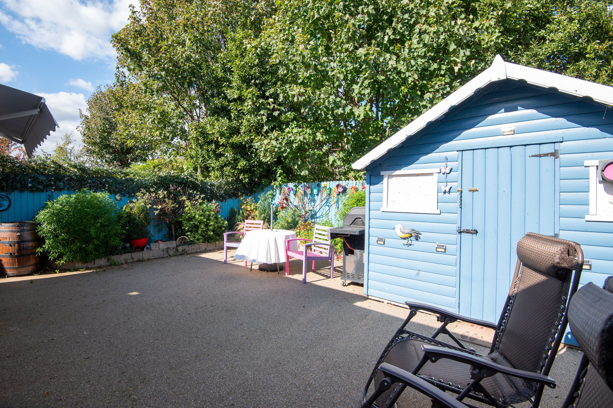 Cobblelocked area for parking to the front with hedging either side. Secluded low maintenance gardens to the rear in resin gravel throughout with raised beds housing mature planting and shrubs. Side access, outside tap and lighting. Timber shed with storage and plumbed for washing machine and dryer.