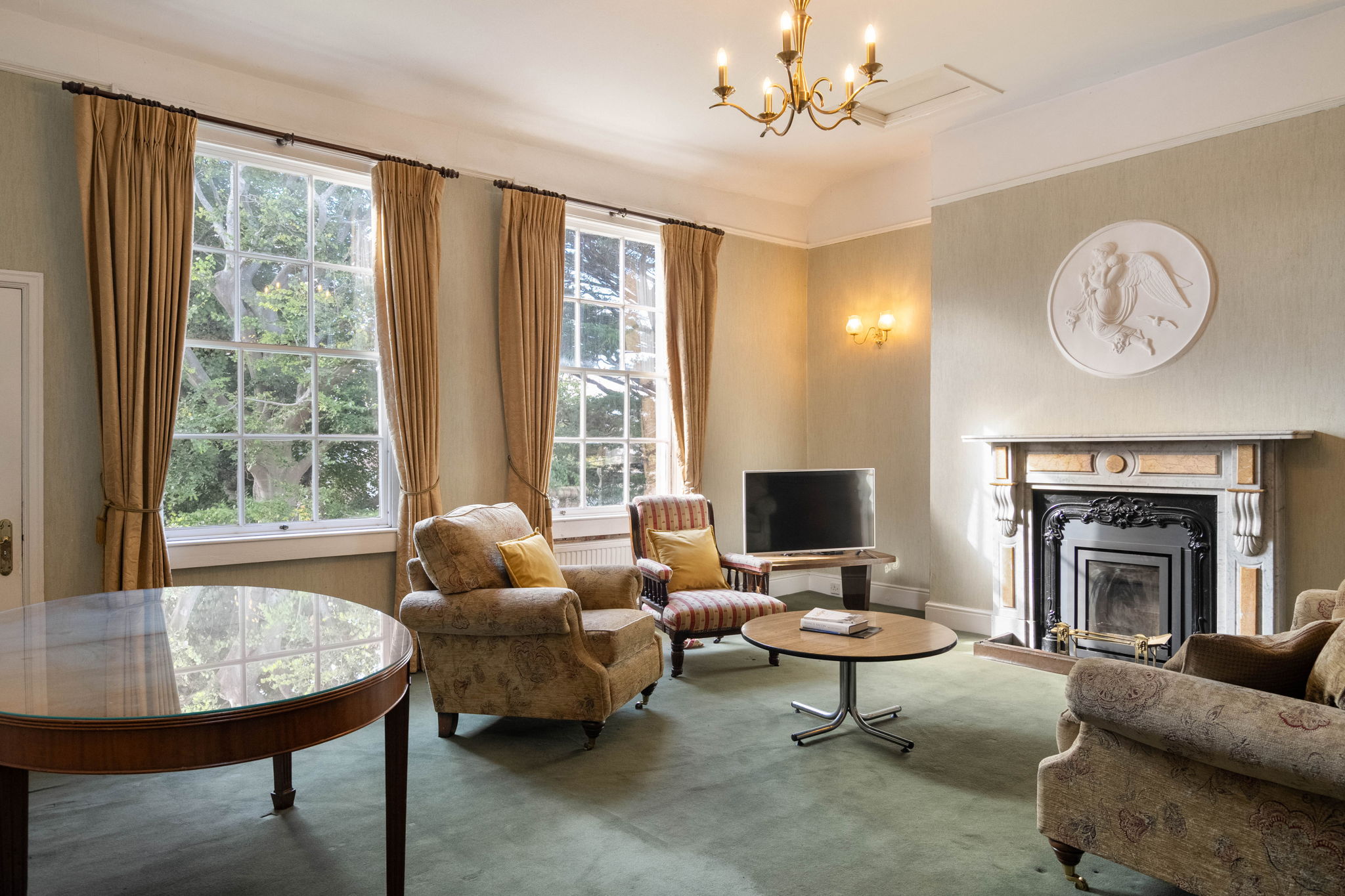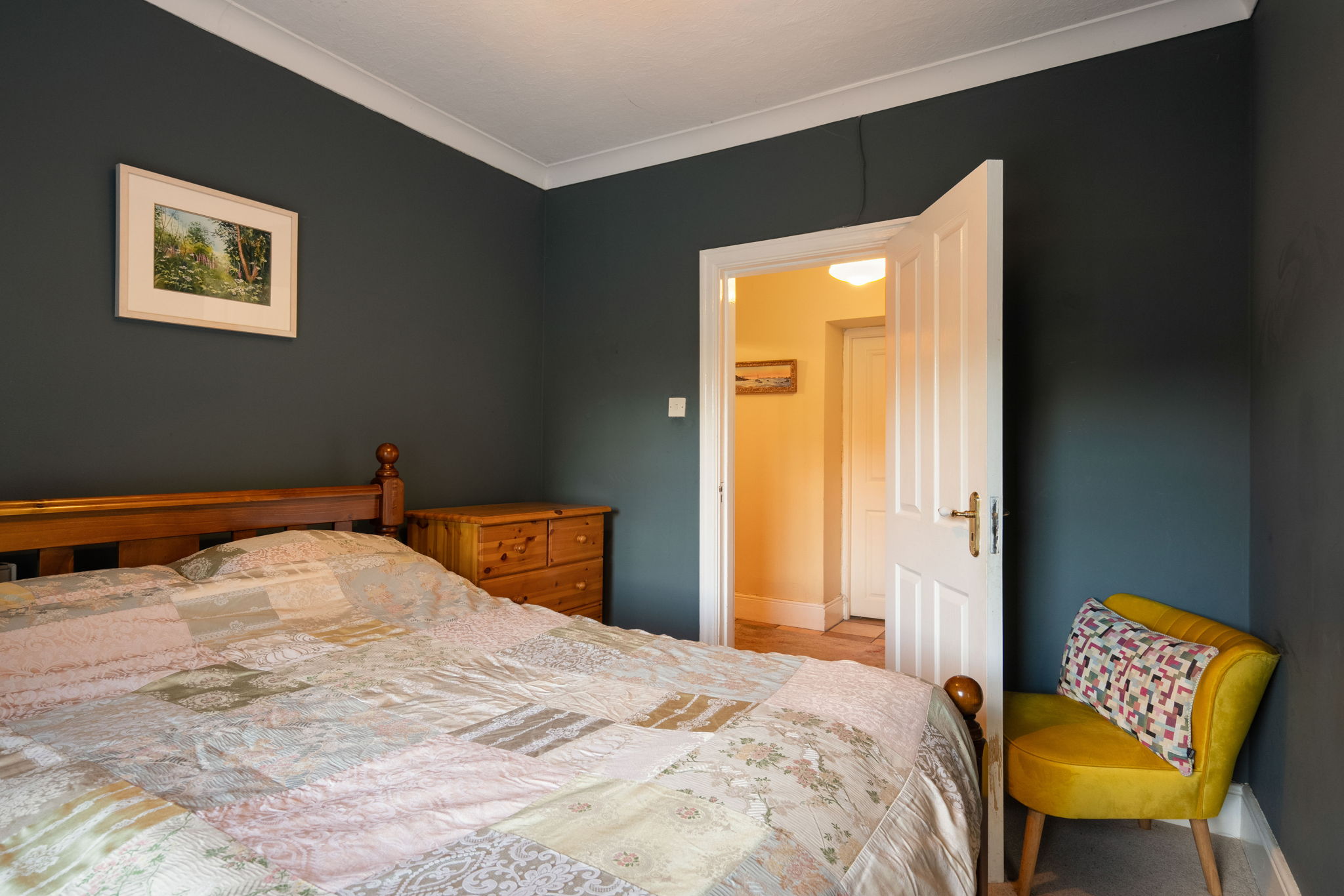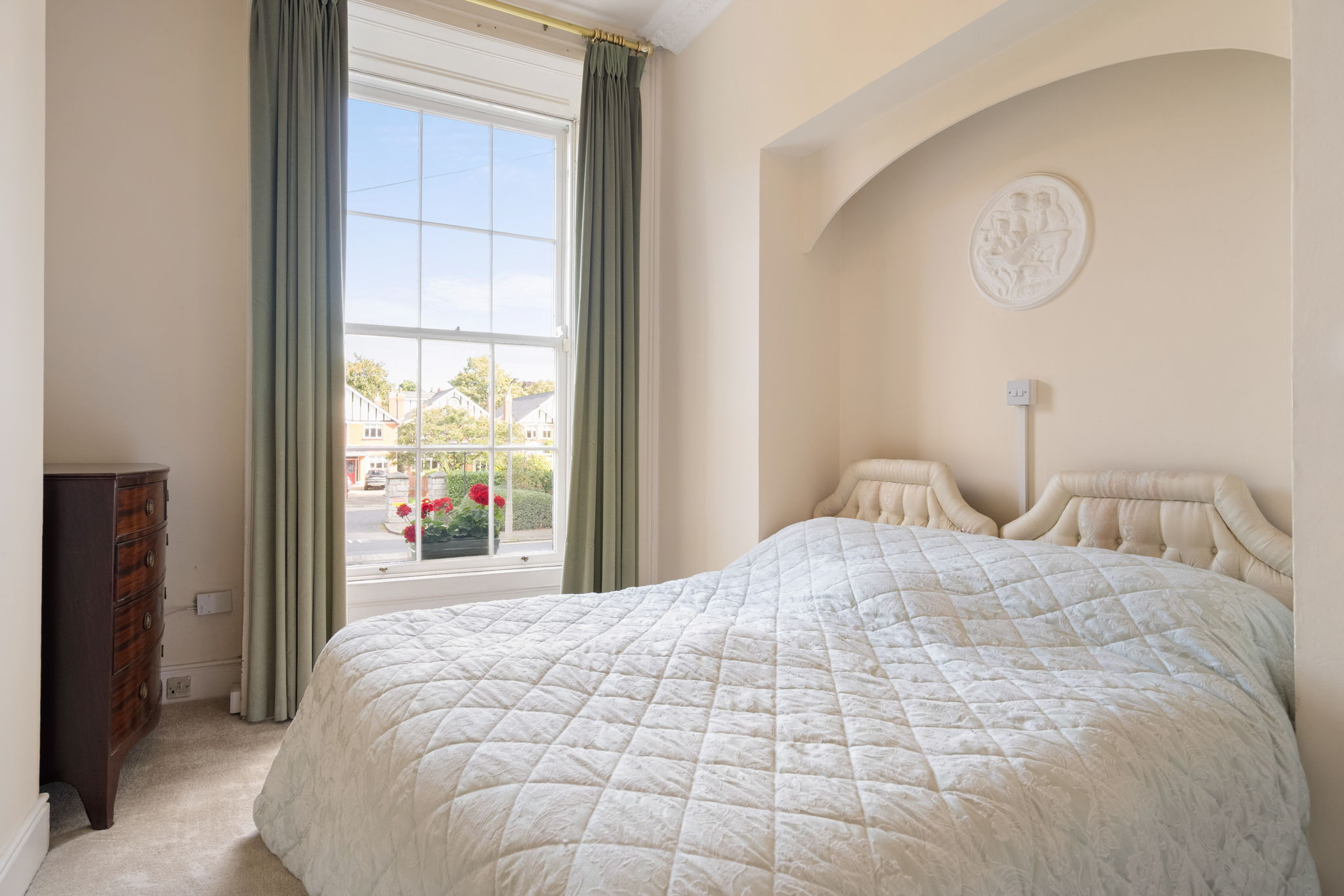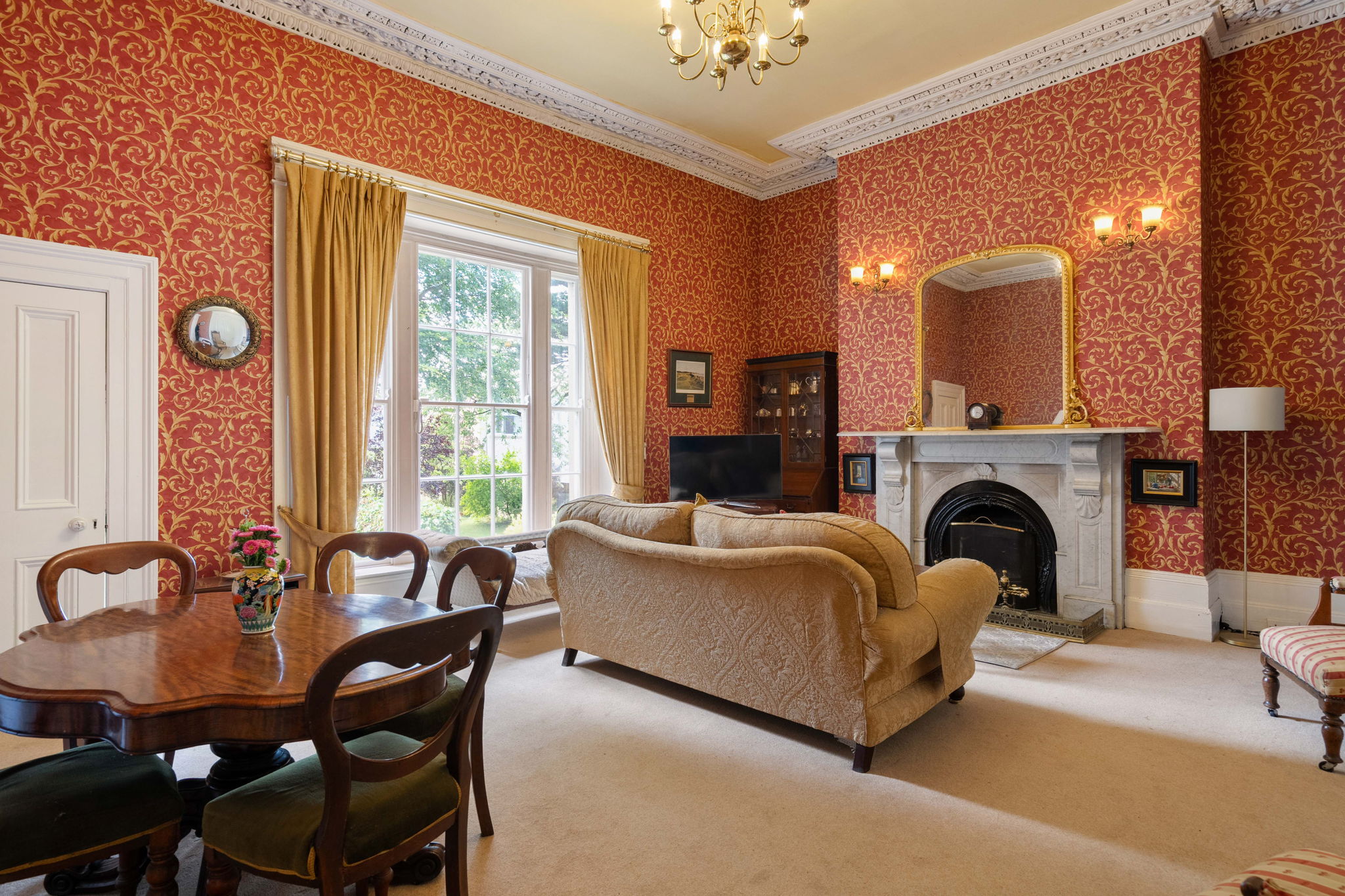 Marble mantlepiece with cast iron inset, slate hearth, ornate ceiling cornice and centre rose. Feature window and overlooking garden.