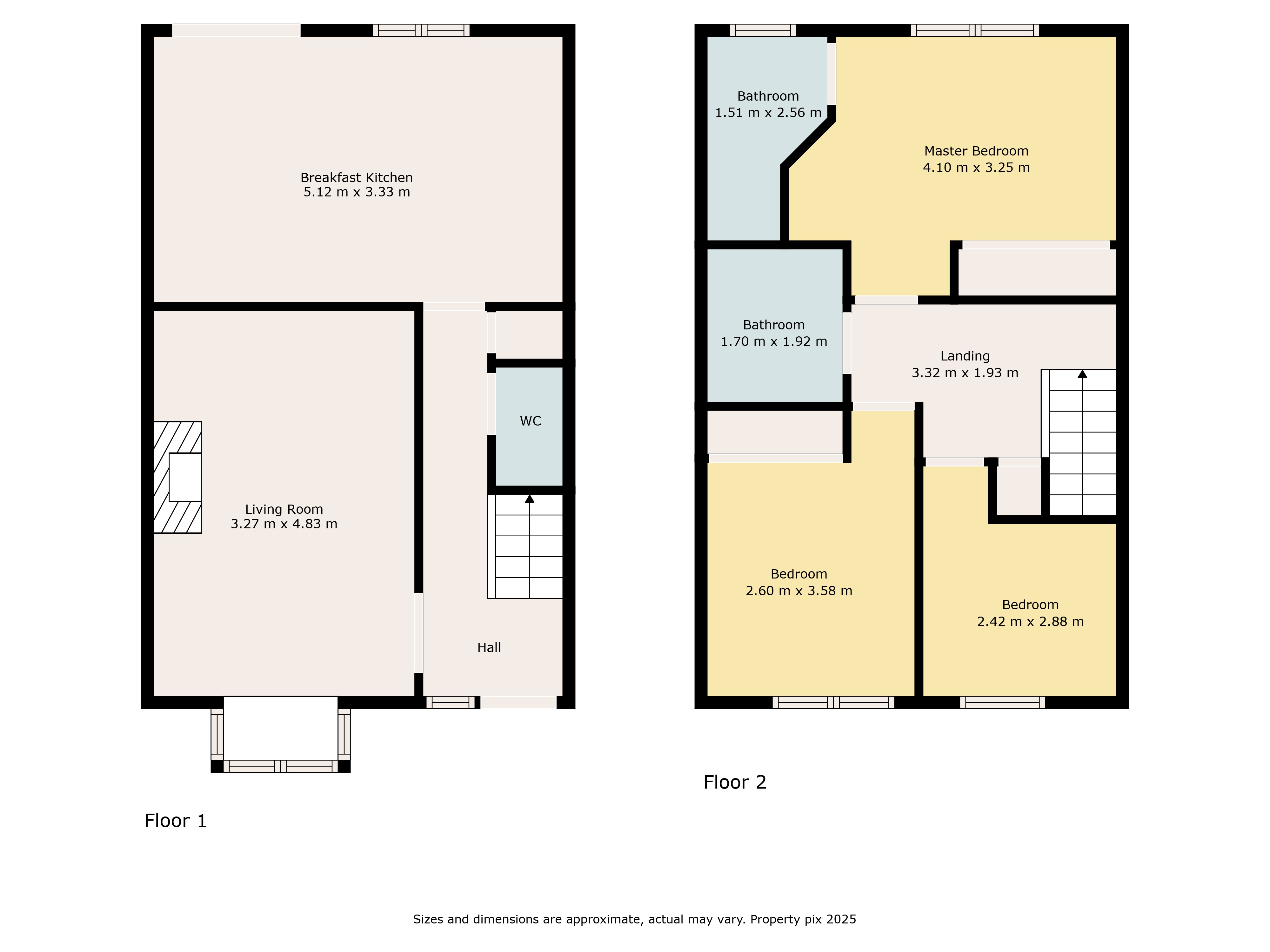 Upstairs are 3 bedrooms – main with en suite shower room, and all with fitted wardrobes.