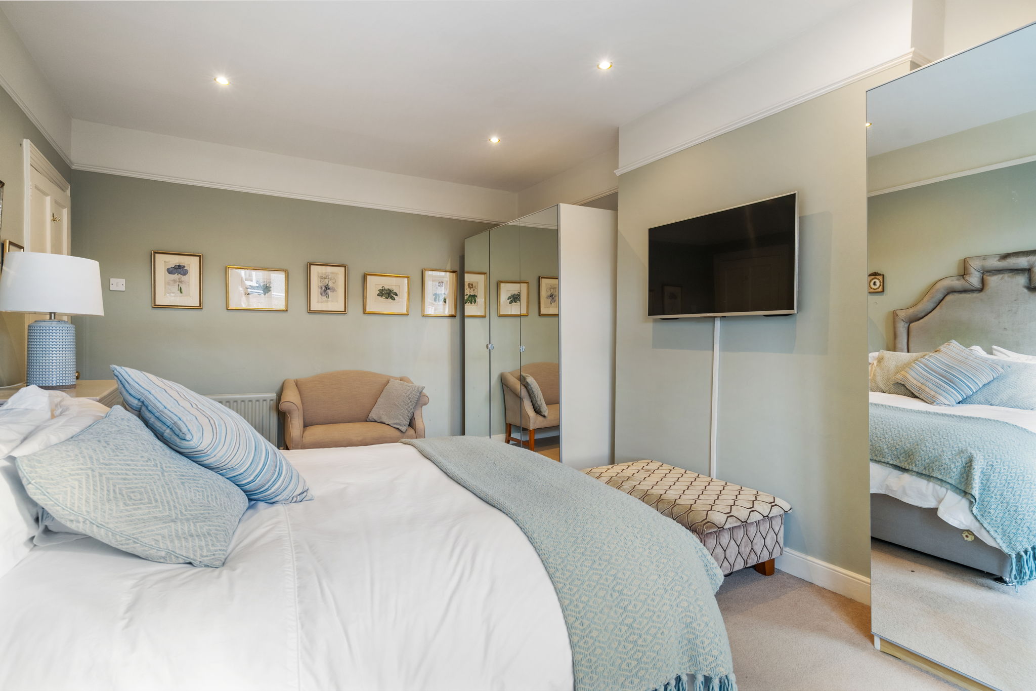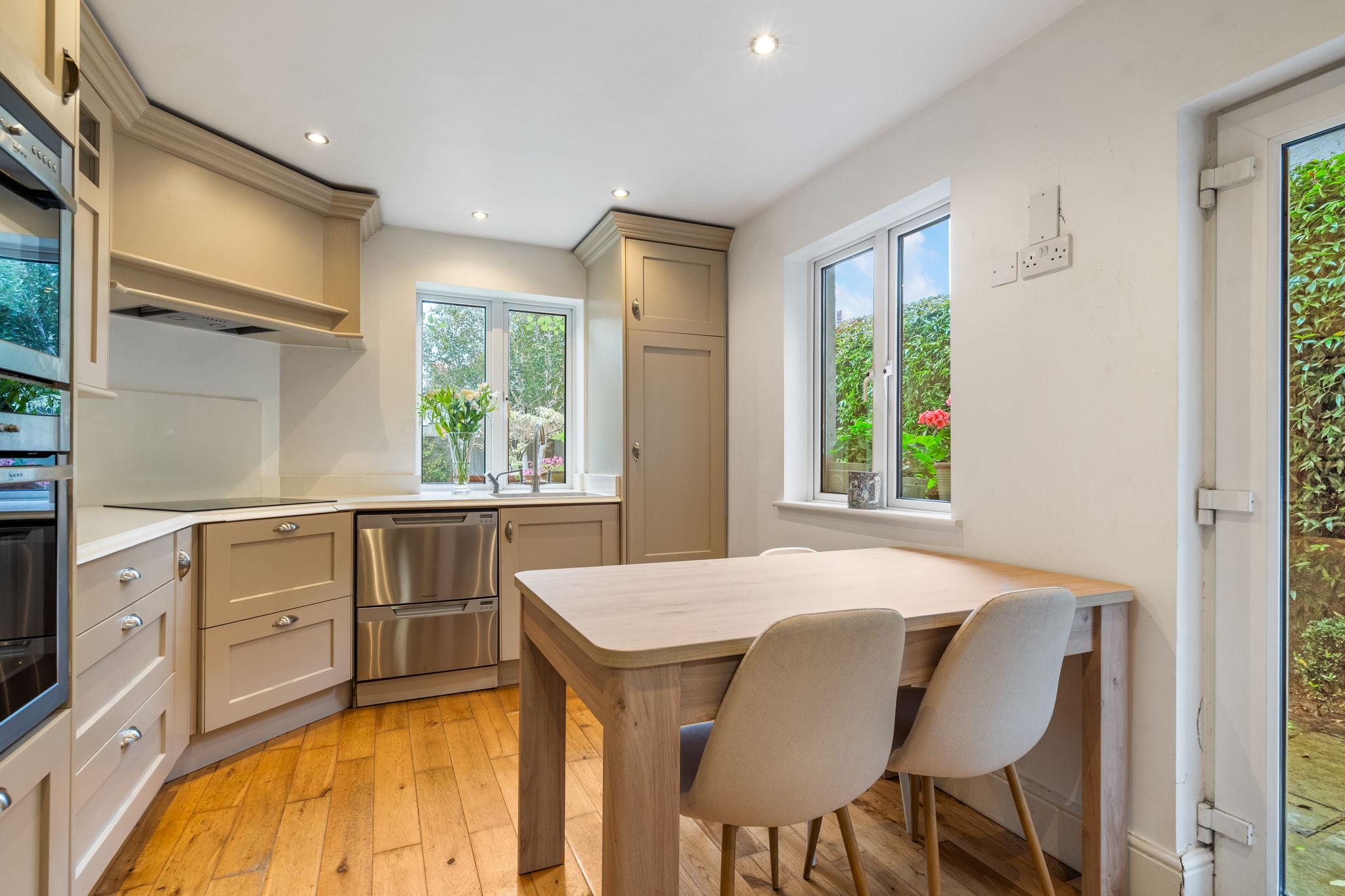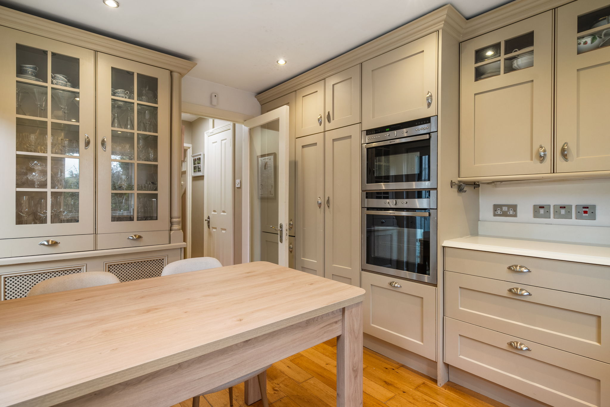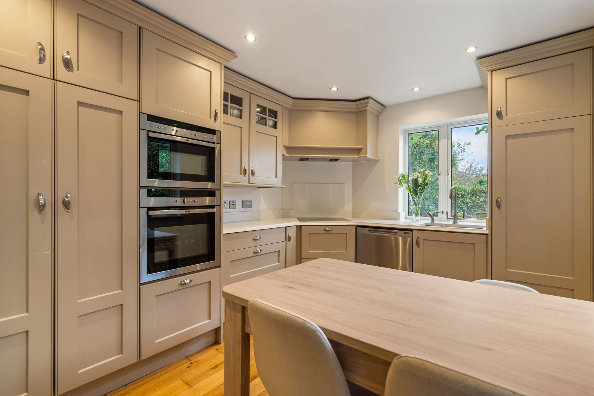 On the return is the kitchen/breakfastroom with an extensive range of solid wood kitchen units, high quality integrated appliances, undermount sink unit and extractor fan finished with a quartz worktop, upstand and backsplash. Patio door to garden and French windows overlooking patio area.