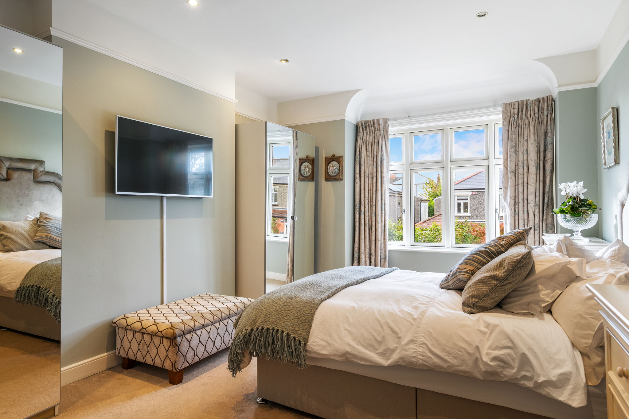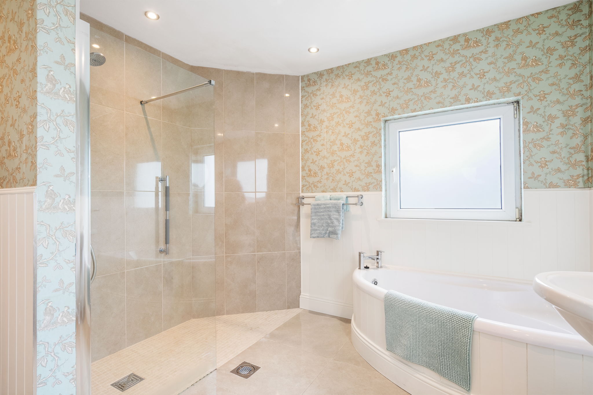 On the first floor are three generously sized bedrooms, bedroom 1 is to the front with bay window, picture rail and recessed lights. Bedroom 2 is to the rear of the property with picture rail and recessed lights and bedroom 3 is to the front again with picture rail and recessed lights.