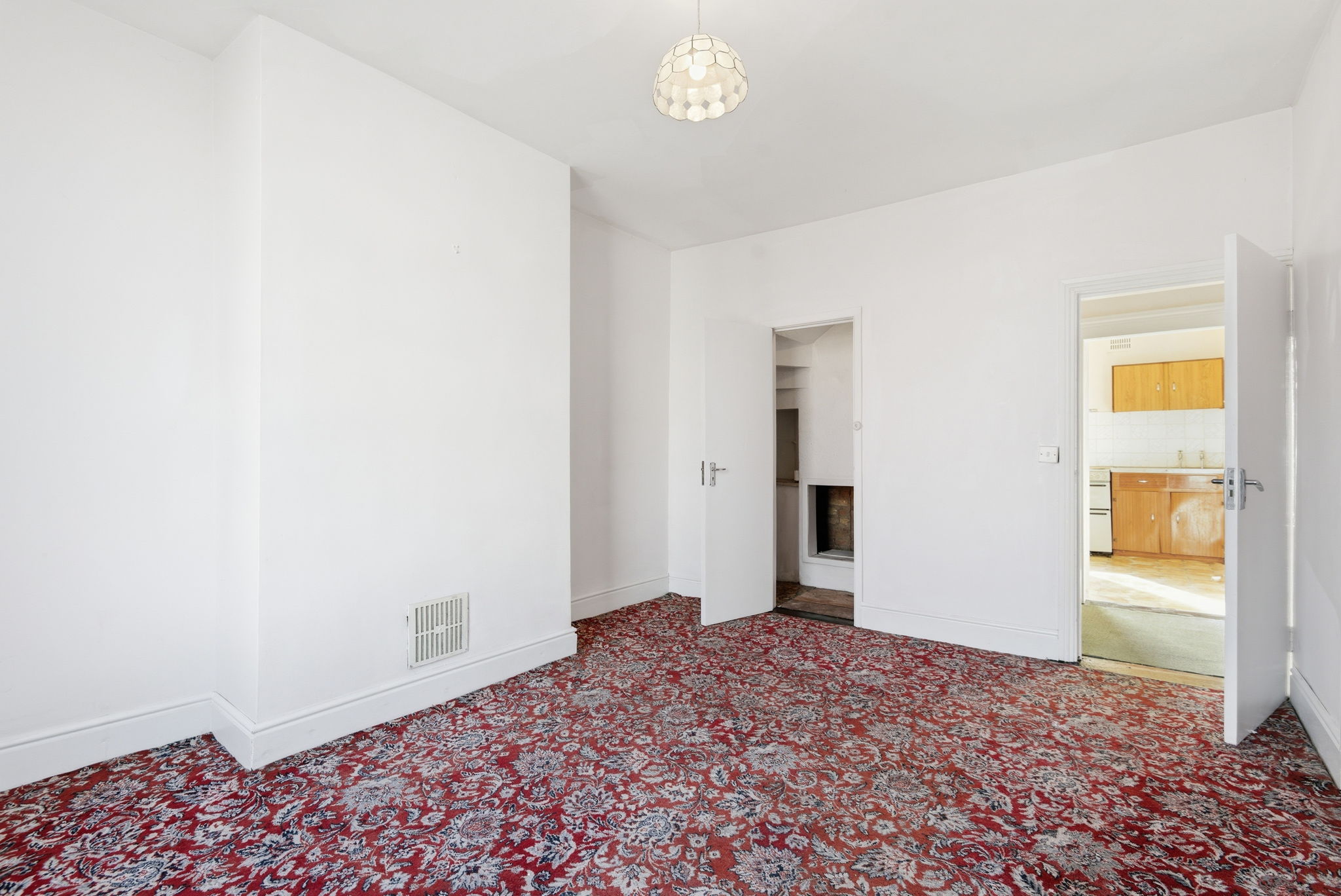 Cast iron fireplace.