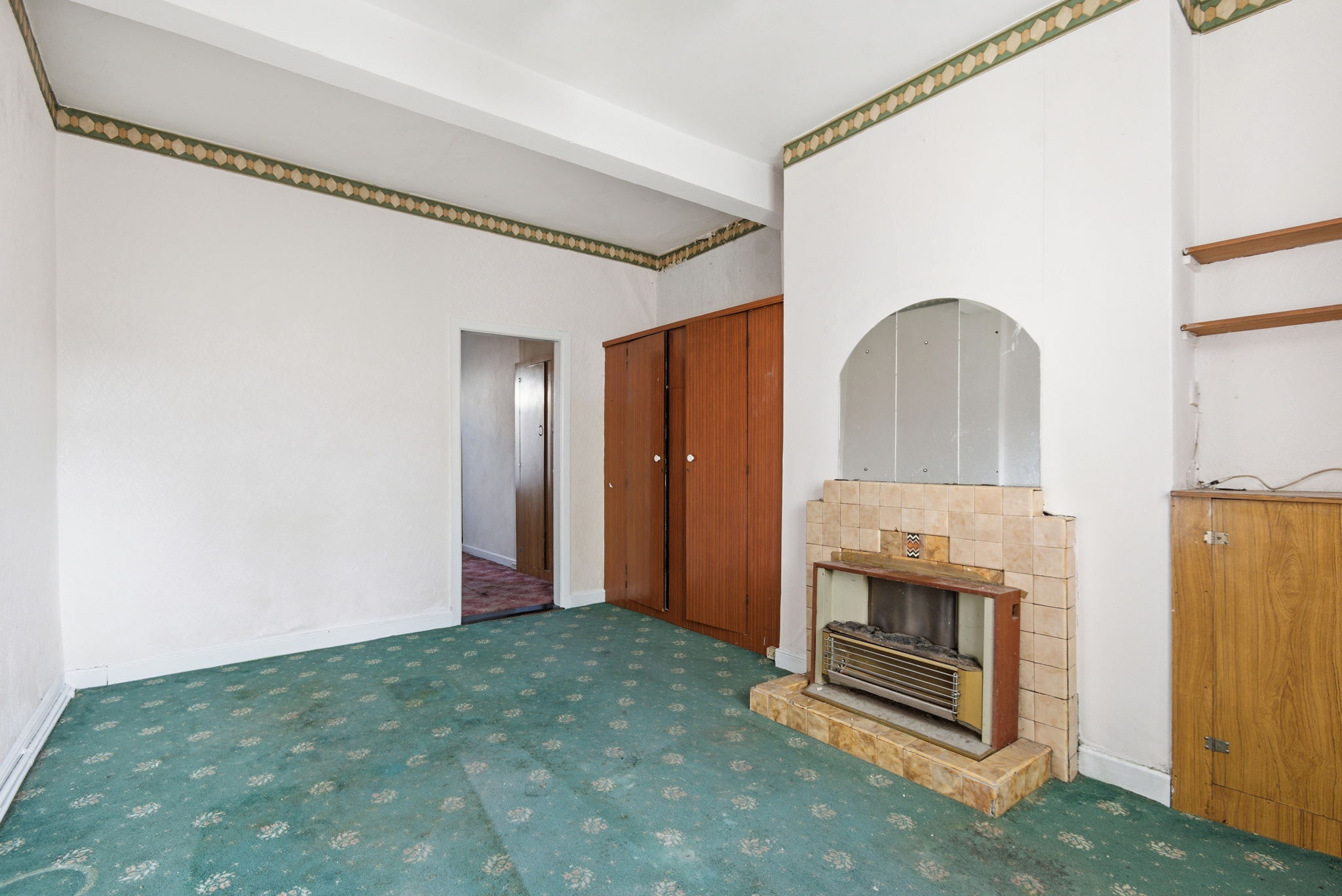 Tiled fireplace.