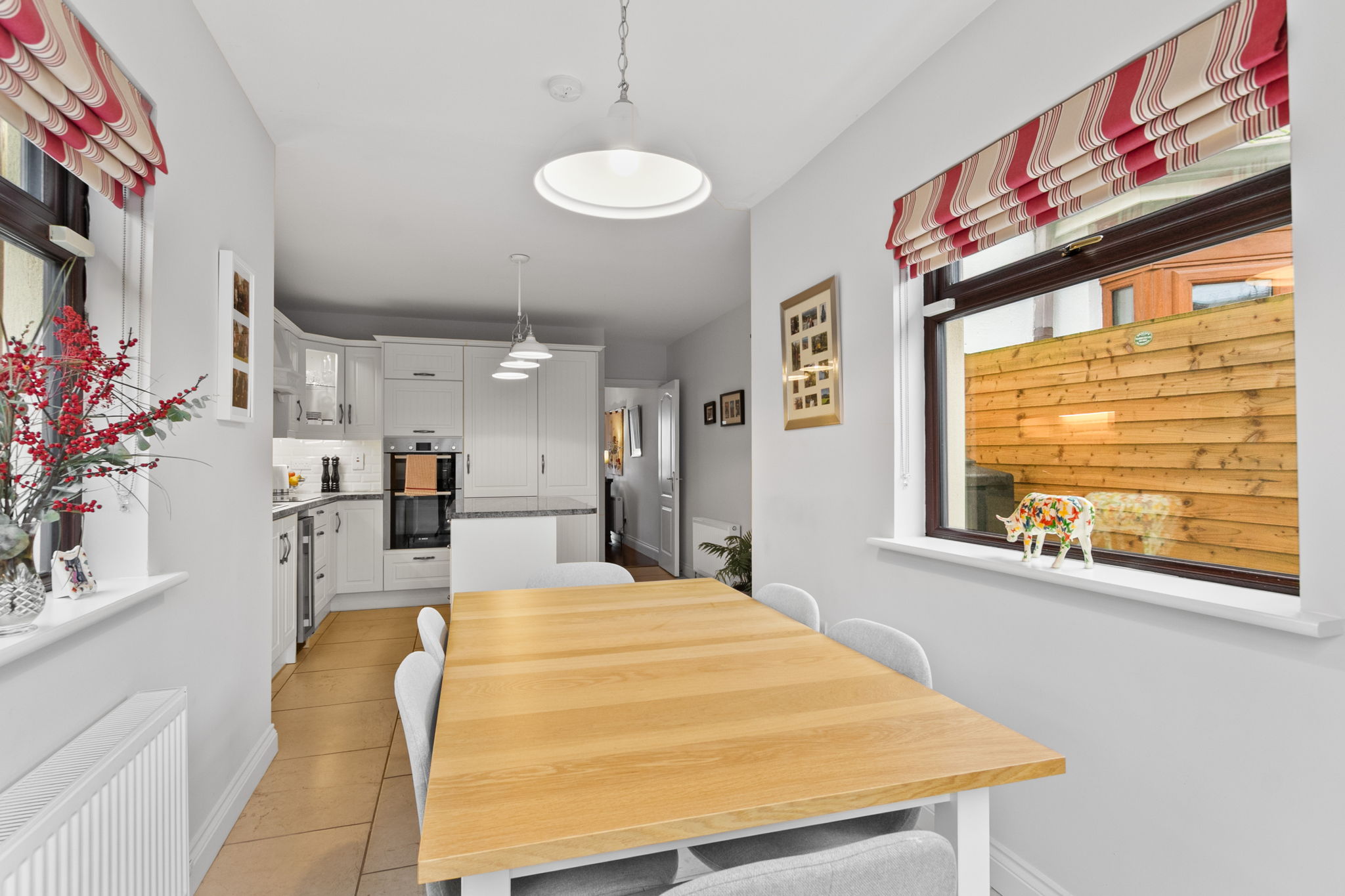 Wonderfully proportioned, bright and airy accommodation throughout and briefly comprises of entrance hall, living room with sealed stove and solid wood flooring to the front. Beyond the living room is a spacious open plan dining/kitchen room with shaker style kitchen units and island unit with stone worktop. Integrated appliances, understairs storage which is plumbed for the washer-dryer with tiled floor throughout and double doors leading to the westerly facing rear garden.