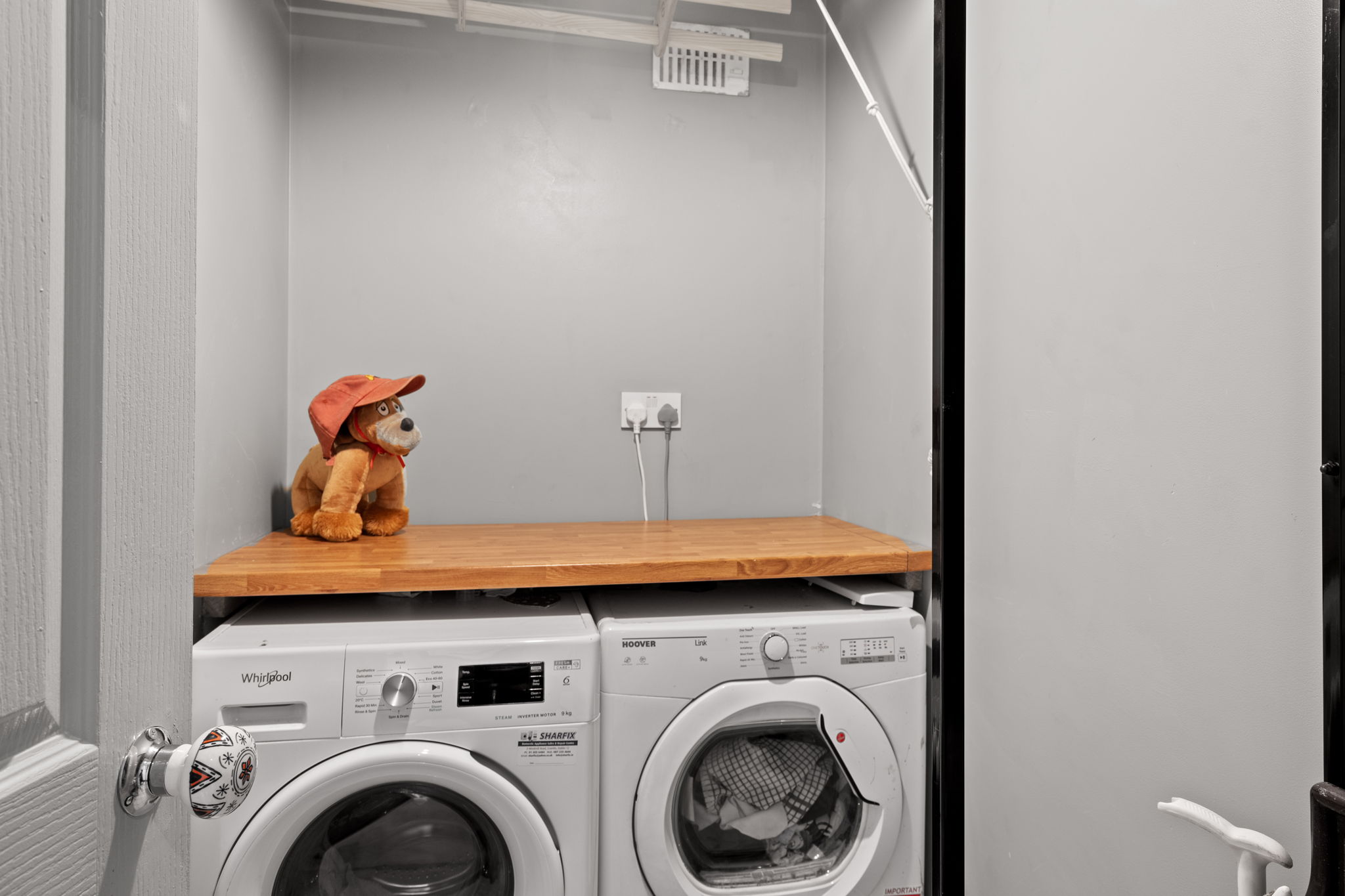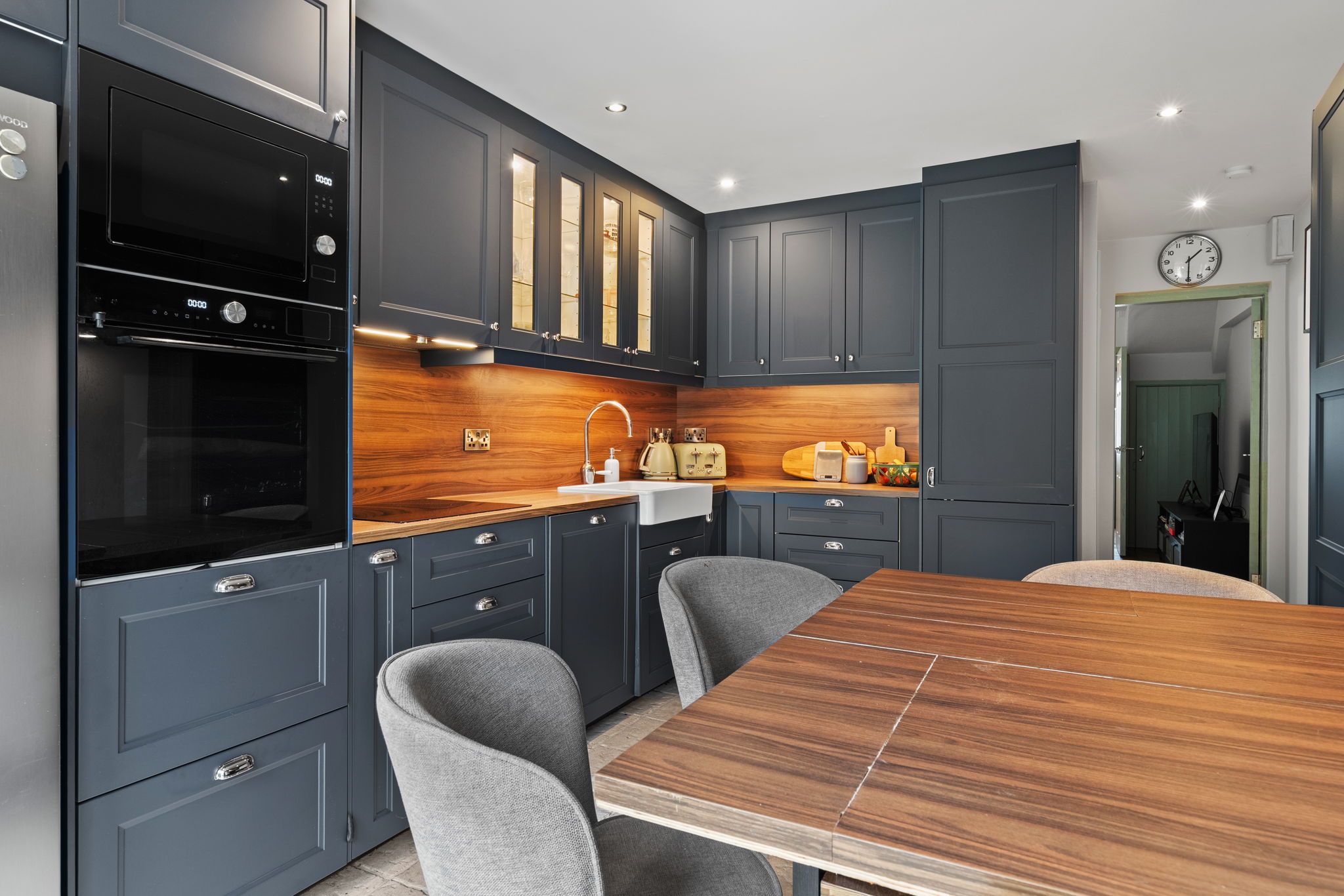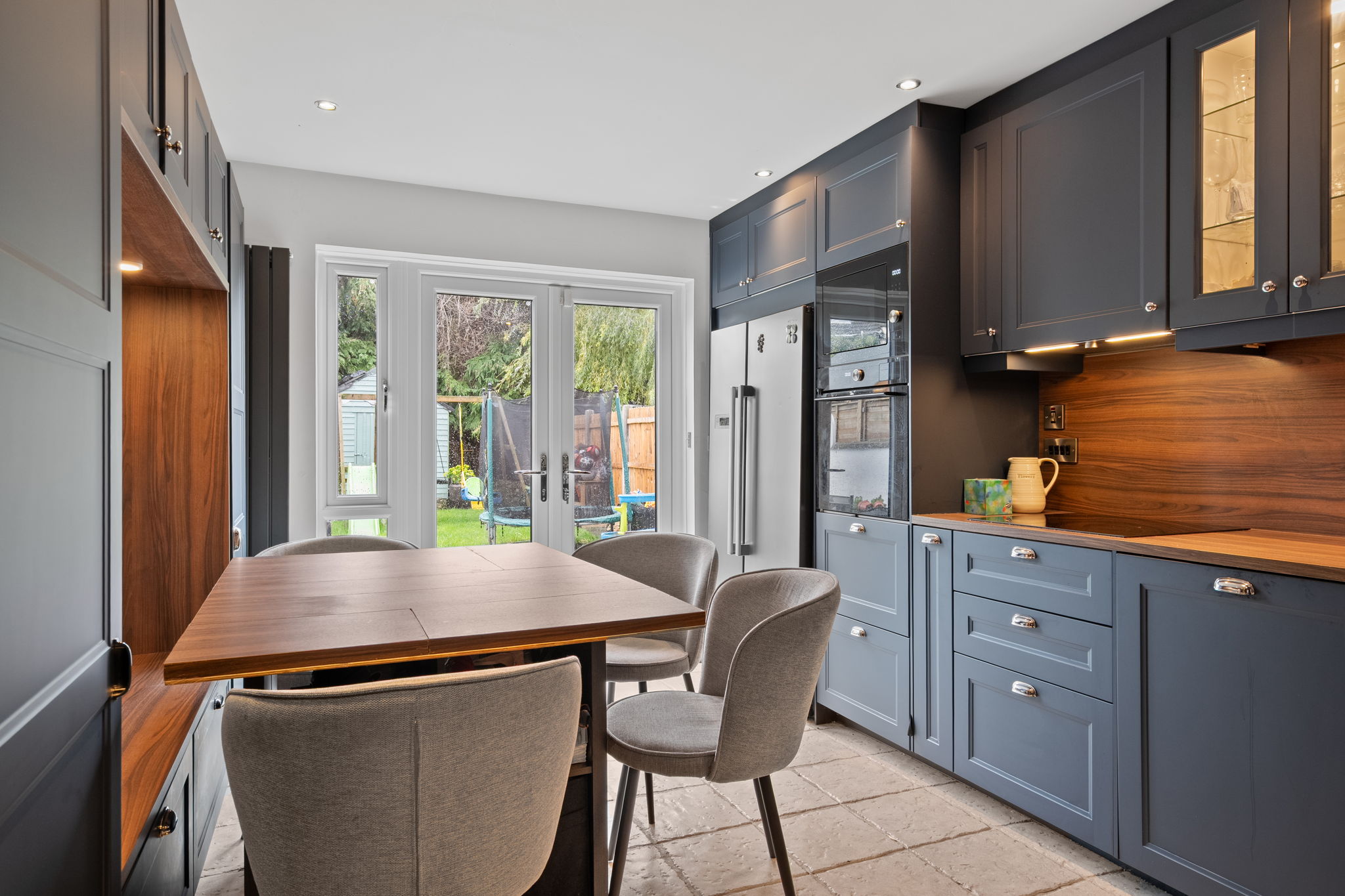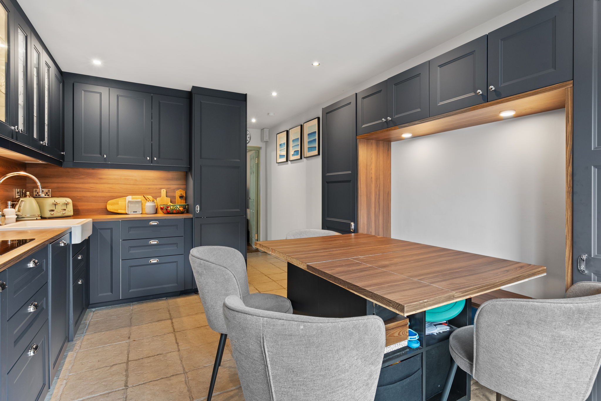 The ground floor is tailored formodern family life. The living room is a bright, generously sized space withdual-aspect windows and excellent storage. The kitchen features a separateutility room for added convenience, along with a Sheila Maid clothes airer forpractical drying. The real heart of the home is the kitchen/dining area,complete with a new bespoke kitchen, double-door fridge/freezer, Belfast sink,and a custom dining table with integrated bench seating and storage.
