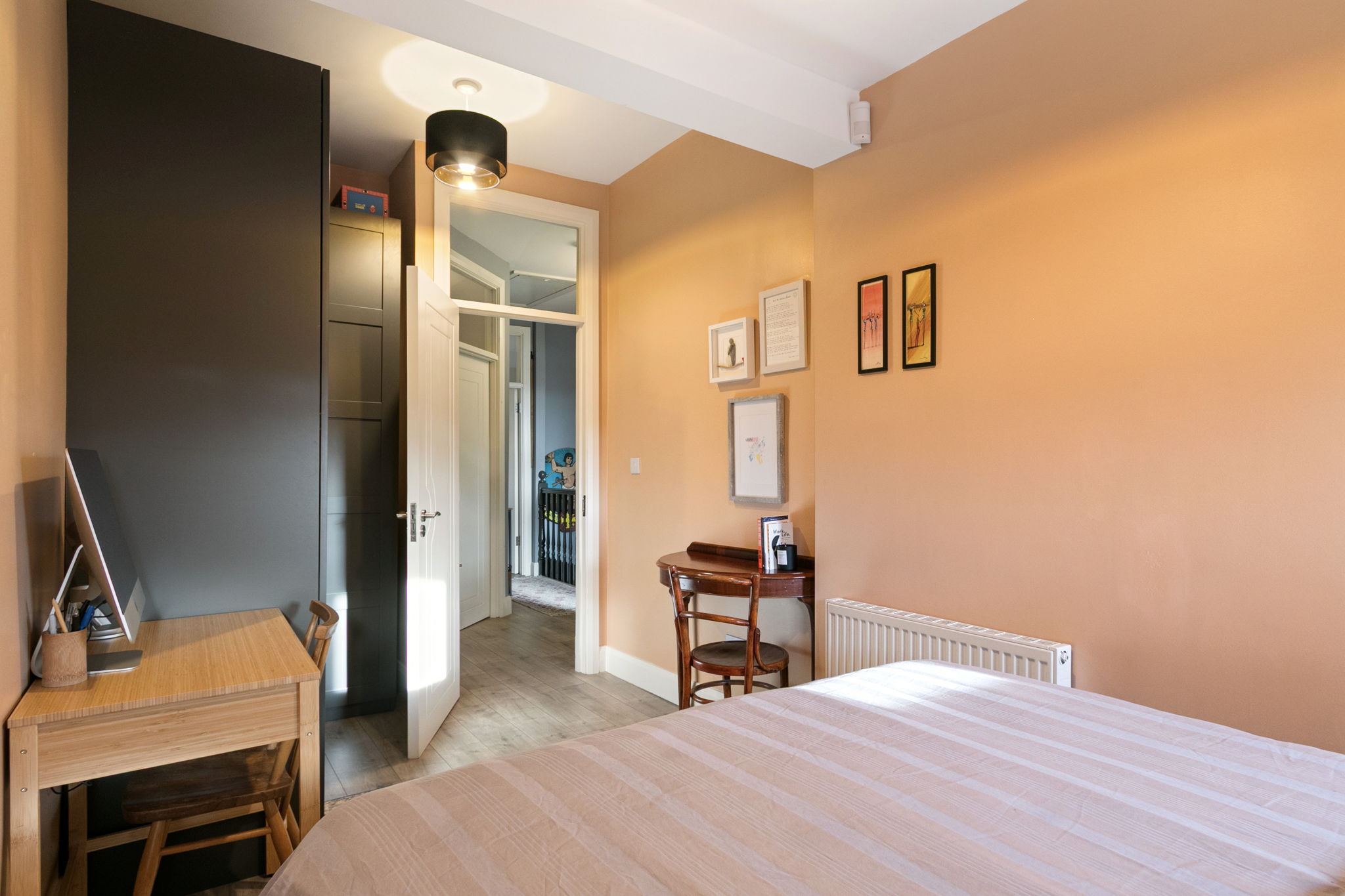 Laminate floor, built in wardrobes.