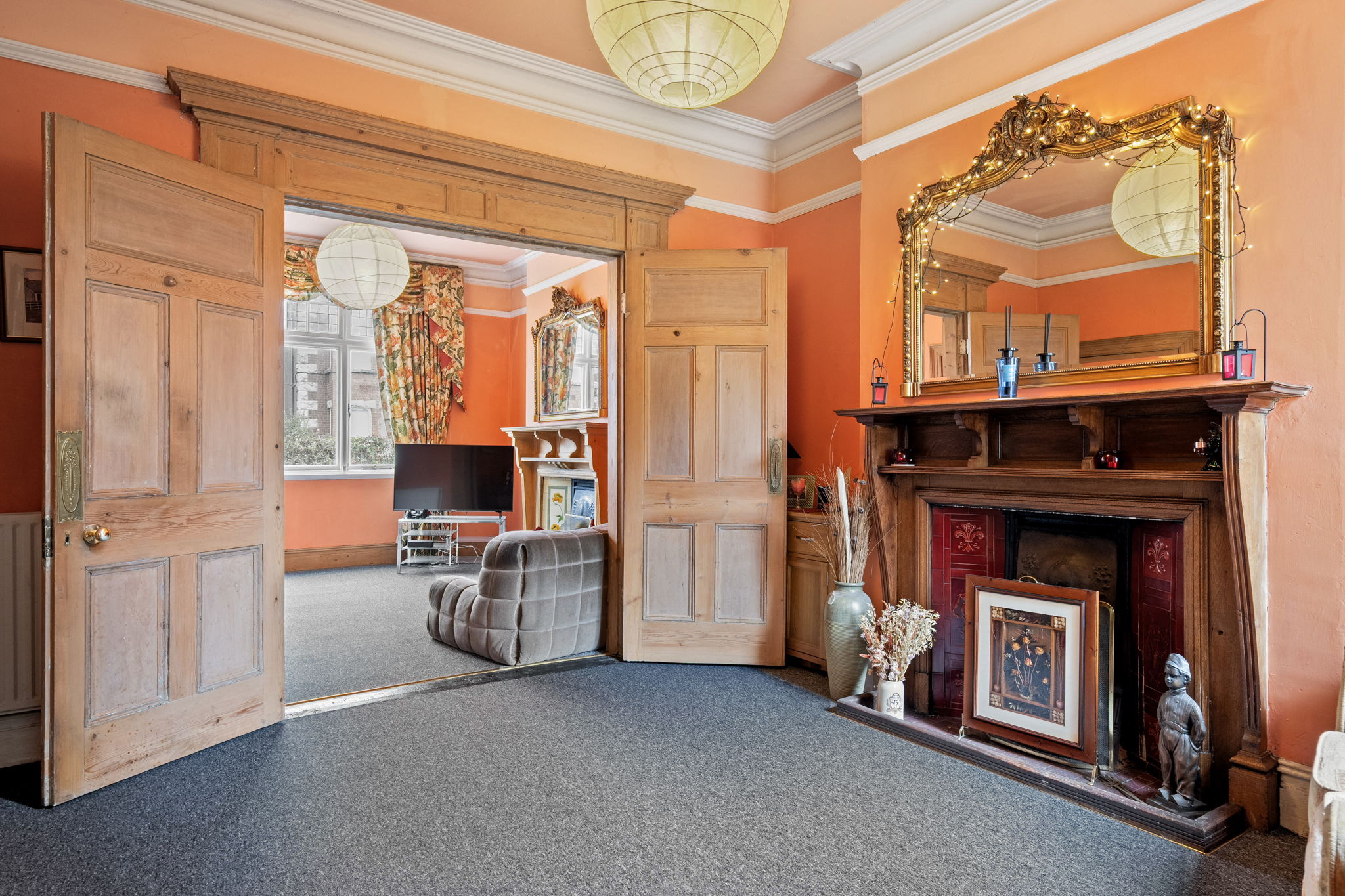 Set behind an attractive redbrick archway with off-street parking, the entrance sets the tone for the charmwithin. A bright and welcoming hallway leads to two gracious interconnectingreception rooms divided by double doors. The front reception enjoys a beautifulbox bay window that floods the space with natural light, while the rearreception opens into a spacious breakfast room and a fully fitted kitchen.French doors open to a mature south-west facing garden extending toapproximately 40ft.