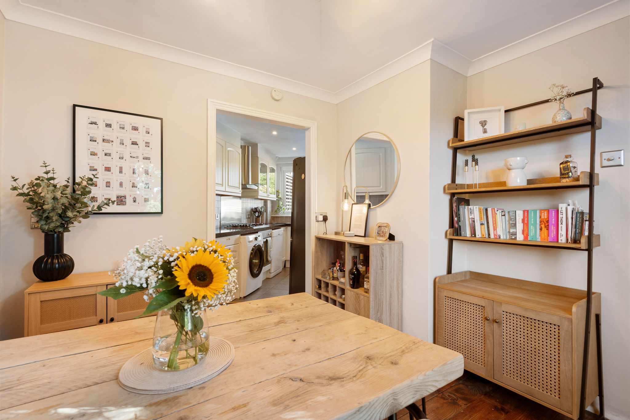 Built in 1935, this delightful home is full of character and period charm. Inside, you will find a welcoming sitting room, a spacious and practical kitchen with larder, and a dining room with original flooring. Upstairs, there are two bedrooms, a nursery, a family bathroom and a home office perfectly suited to modern living. Outside, a garage provides excellent storage, while a decked area off the kitchen creates a functional utility space and an ideal entertaining area.