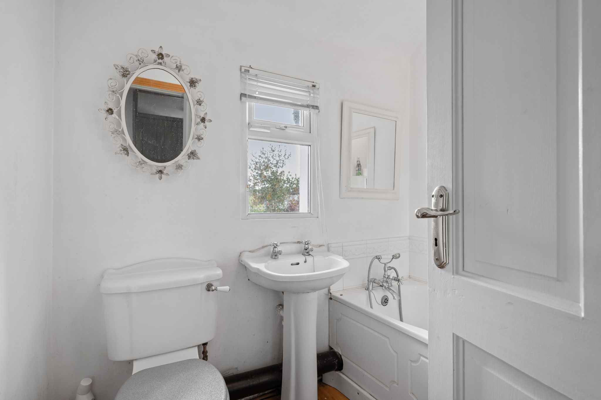 Upon entrance, a bright & airy and inviting hallway leads you to both the living room and kitchen breakfast room to the rear. The front living room is a spacious and well-proportioned room with a marble surround open fireplace and feature bay window. The kitchen/breakfast room is superbly bright and a comfortable family space with ample fitted maple shaker style kitchen cupboards and a 4-ring gas hob, electric oven, archway through to a bright and cosy middle family room, an ideal space for a variety of uses. To the rear off the kitchen there is a shower room with shower, wc and whb. Door to rear garden.