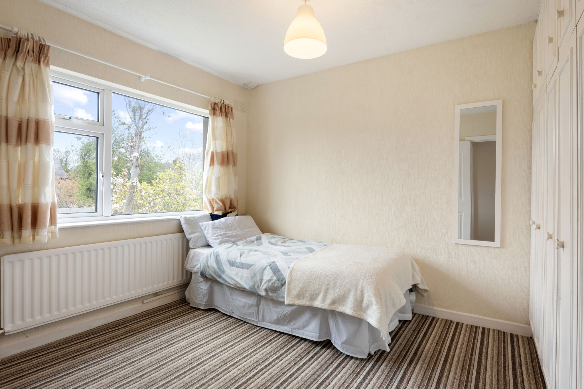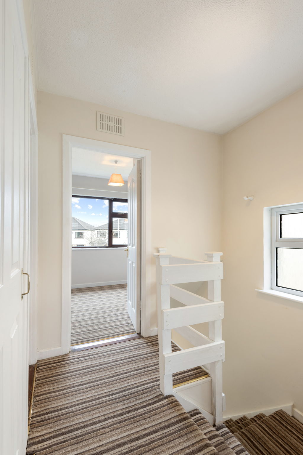 Upstairs, the property offersthree bedrooms—two generous doubles and a well-proportioned single—along with a spacious family bathroom with both a bath and separate shower. Built-inwardrobes provide excellent storage, and the landing area offers access to additional storage.