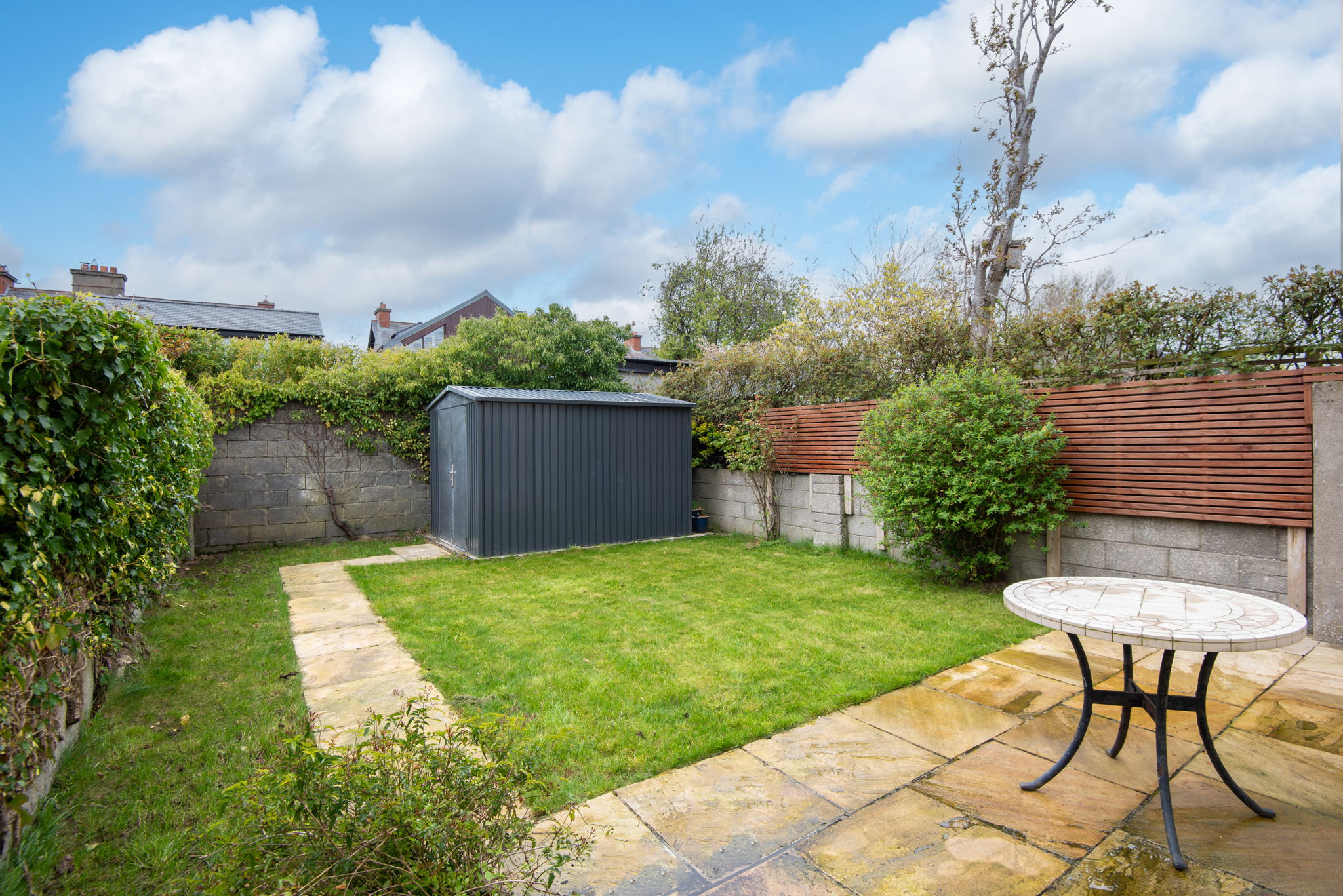 To the rear, the garden benefitsfrom a desirable westerly orientation, allowing for excellent afternoon andevening sunlight—ideal for outdoor dining, relaxing, or family use. To thefront there is driveway parking and a mature residential setting typical ofthis established development.