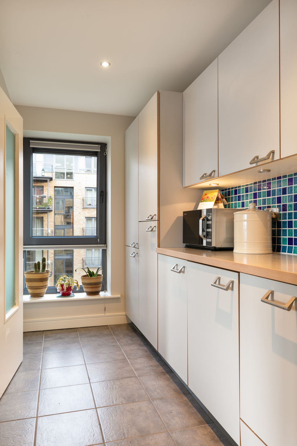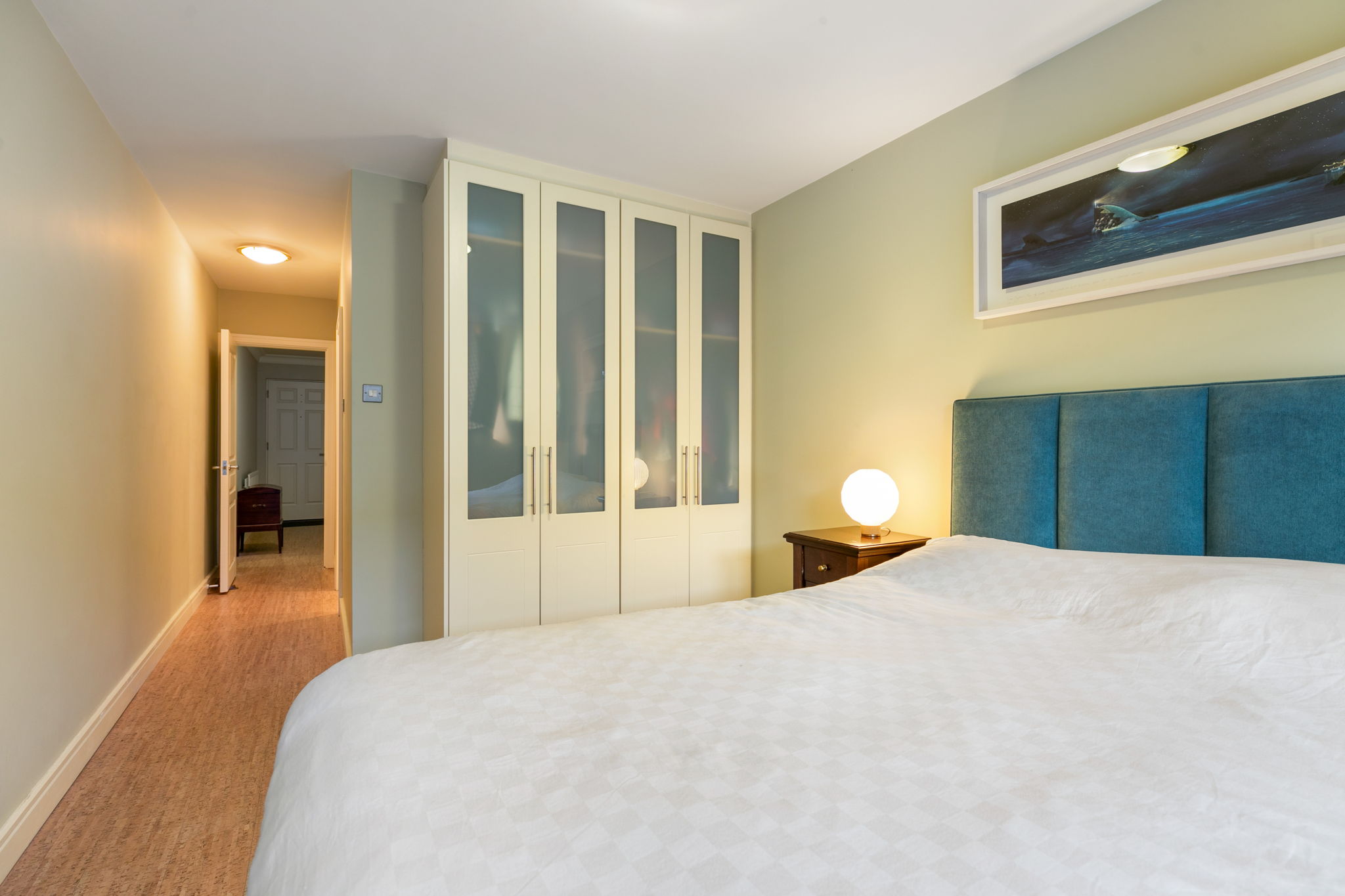 The well-proportioned accommodation includes a welcoming entrance hall, an open-plan living and dining area with access to a dual-aspect wrap around balcony surrounded by greenery, and a sleek, functional kitchen. Both double bedrooms are generously sized, with the master bedroom featuring its own en-suite. A contemporary family bathroom completes the layout. The apartment enjoys tranquil views of the development’s beautifully landscaped communal gardens, which seamlessly connect to Bushy Park.